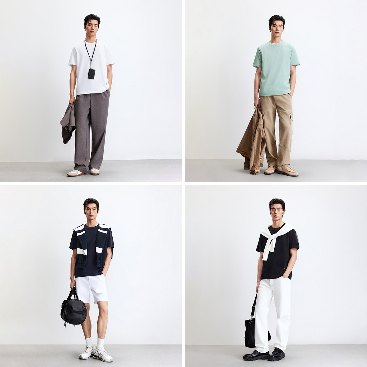 杰克琼斯纯棉直角肩T恤时尚百搭潮流推荐速干防晒短裤男