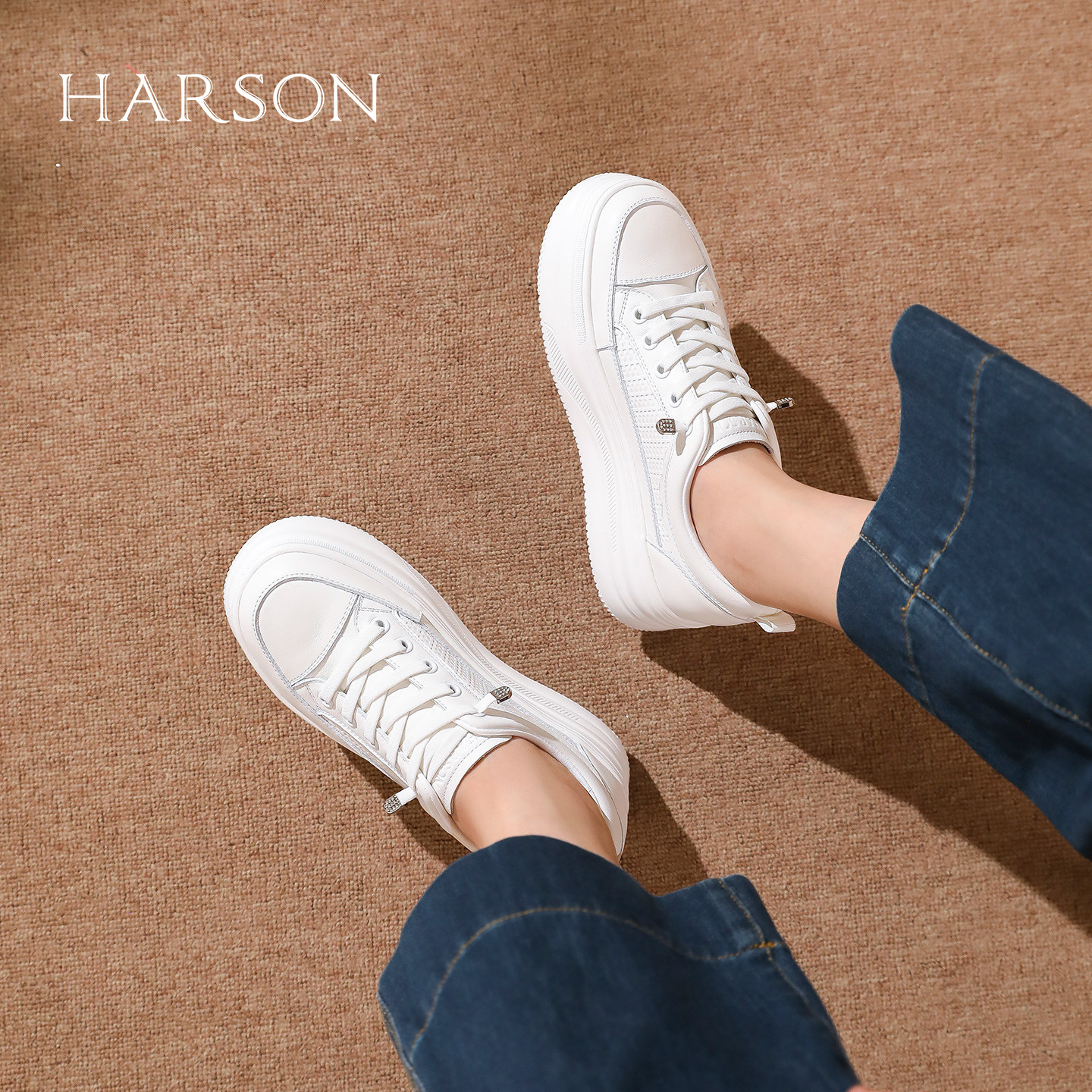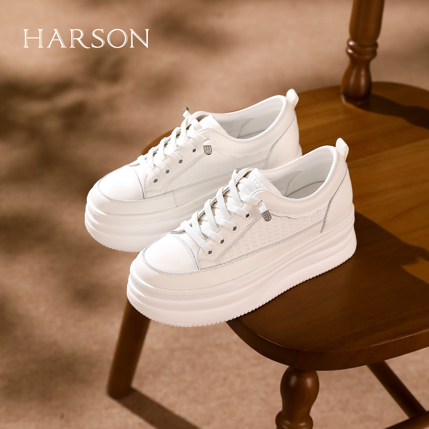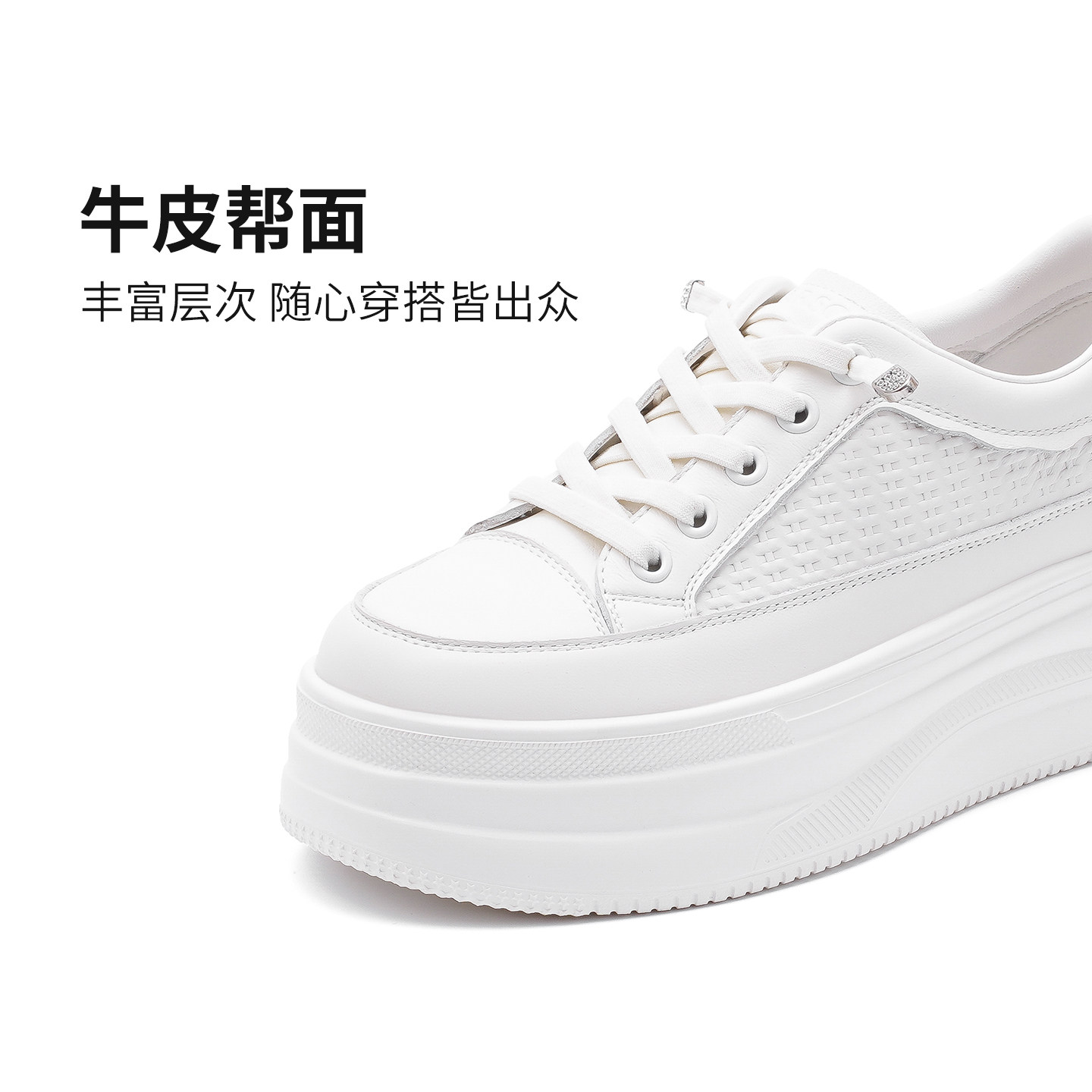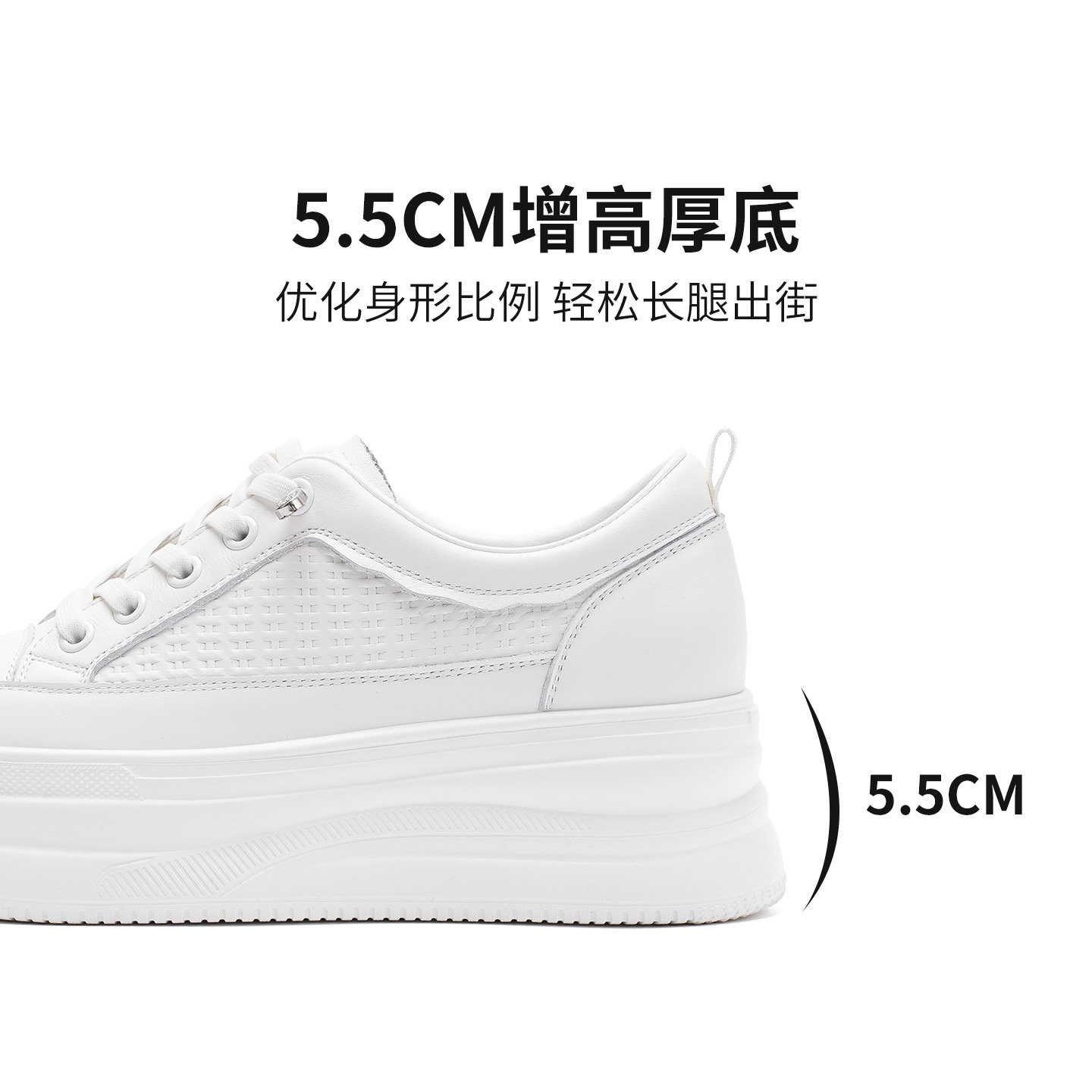 哈森简约风圆头小白鞋女厚底显高百搭通勤休闲鞋不累脚HCL250306