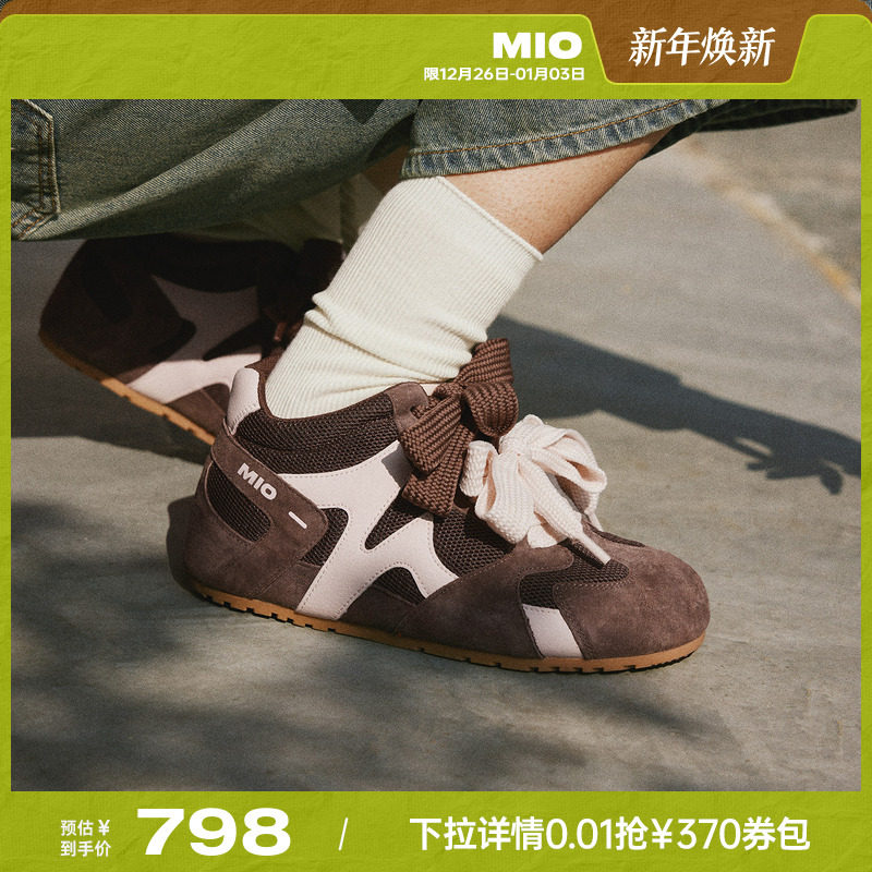 MIO米奥薄底鹦鹉德训鞋女2025秋季新款高帮运动拼色双鞋带休闲鞋