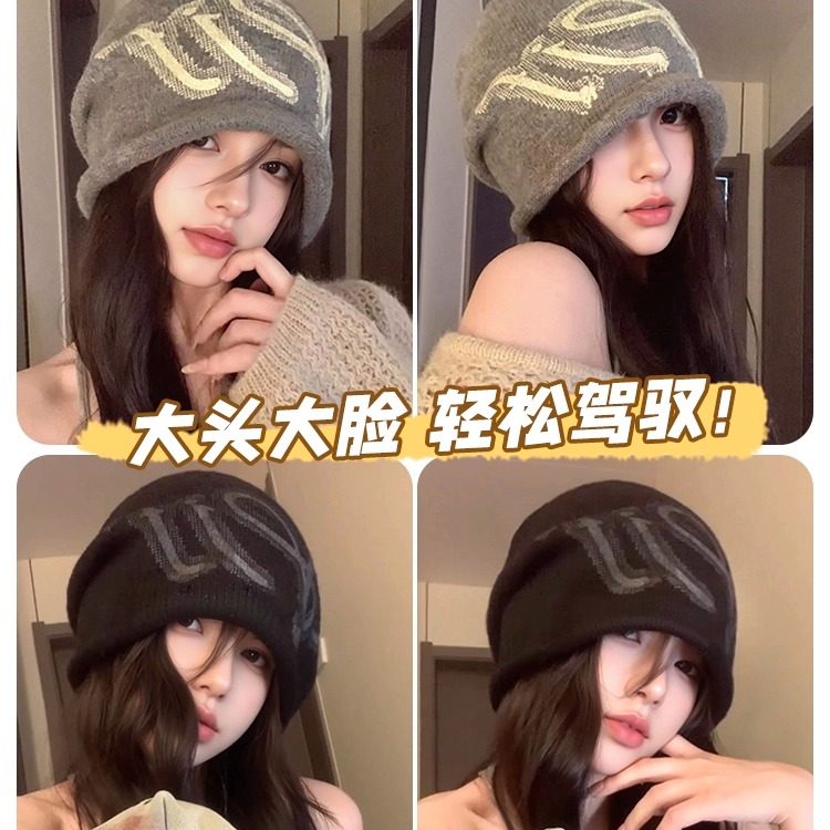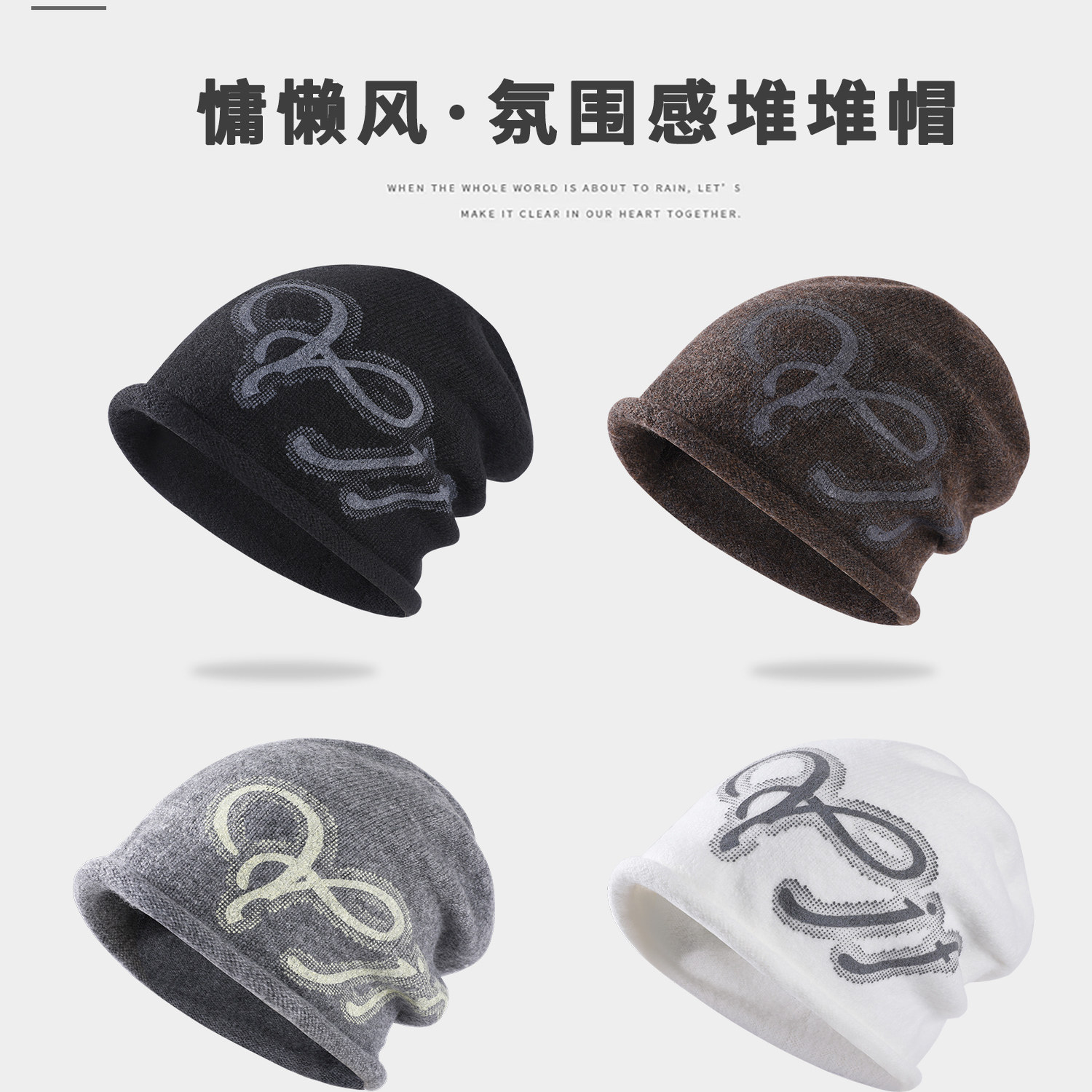 帽子男士秋冬潮毛线帽男款保暖百搭冷帽宽松大头围显脸小针织帽男