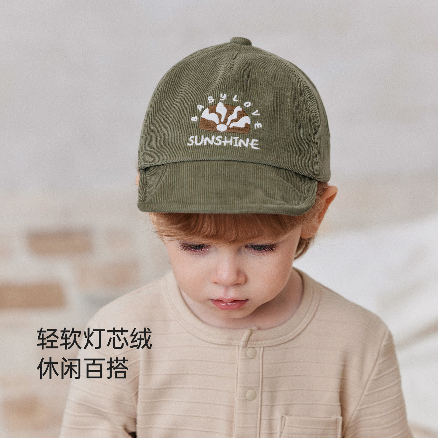 babylove婴儿帽子春秋纯棉灯芯绒软檐帽宝宝百搭鸭舌帽休闲棒球帽
