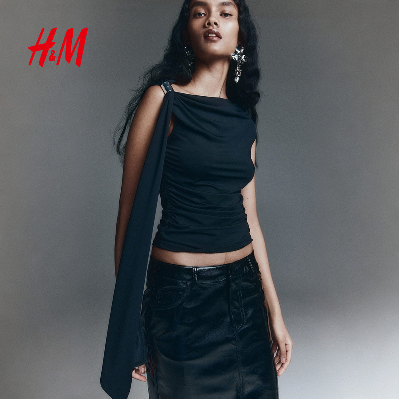 HM春季女装垂坠单肩上衣1301773
