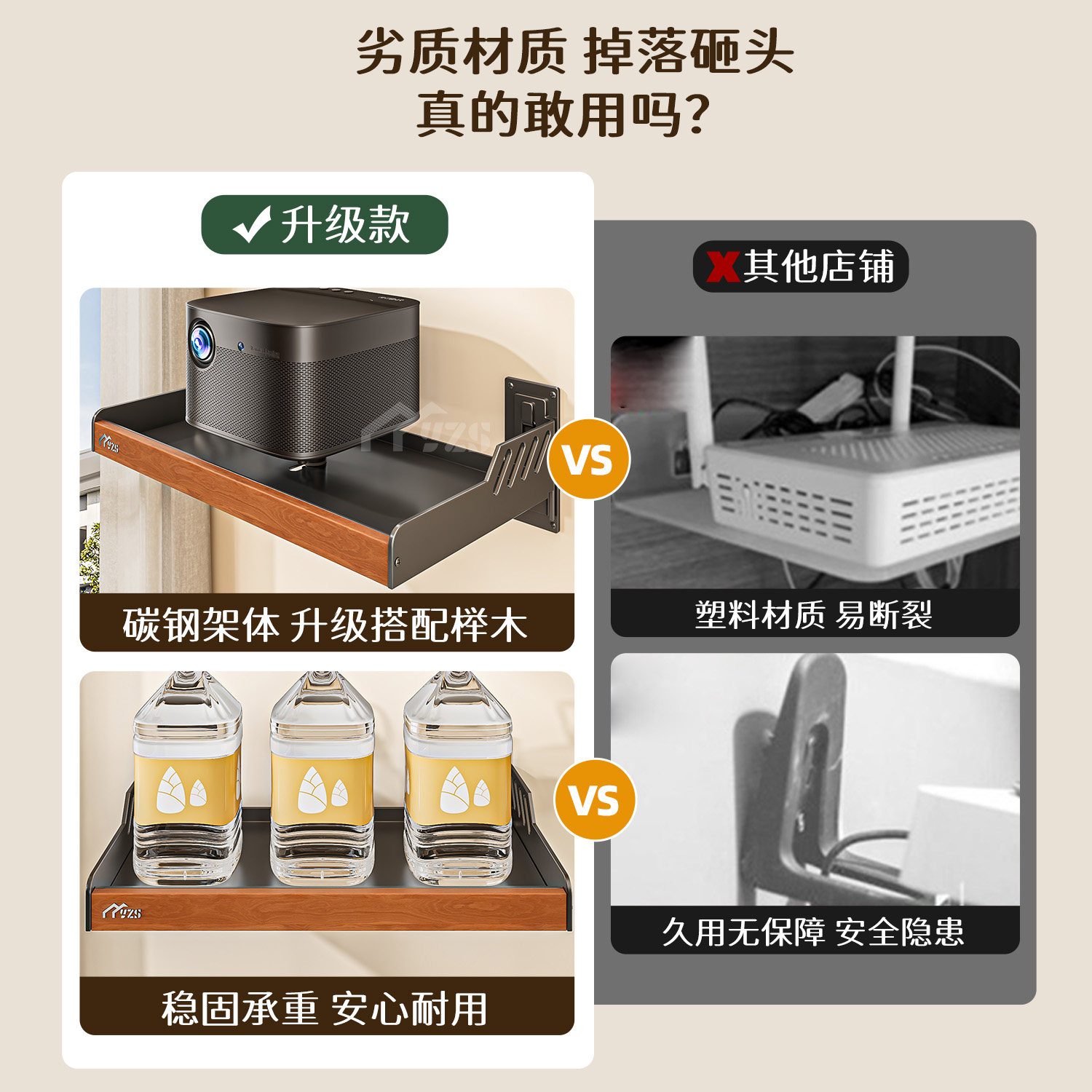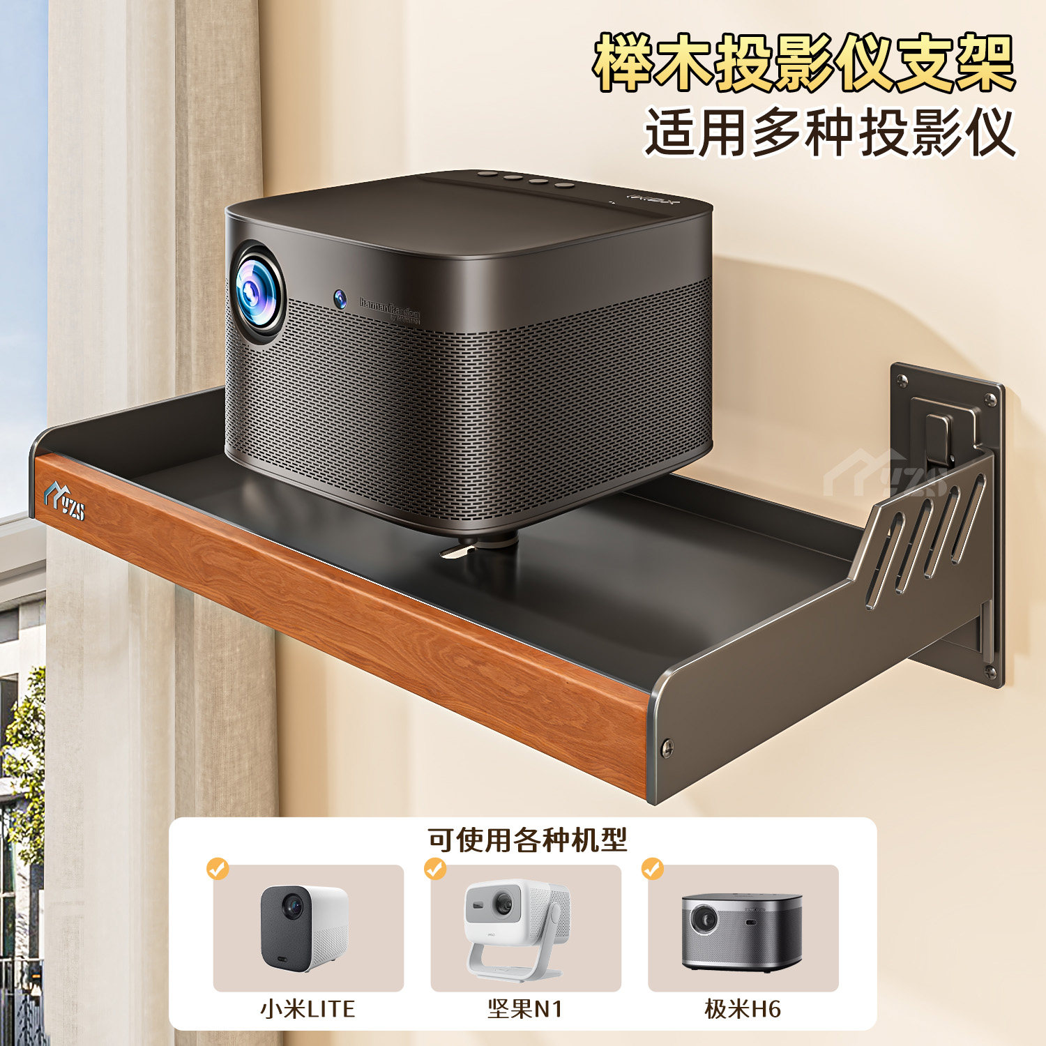 复古风榉木投影仪置物架路由器wifi机顶盒投影仪支架壁挂式床头适用小米坚果极米爱普生复古放置台多功能架