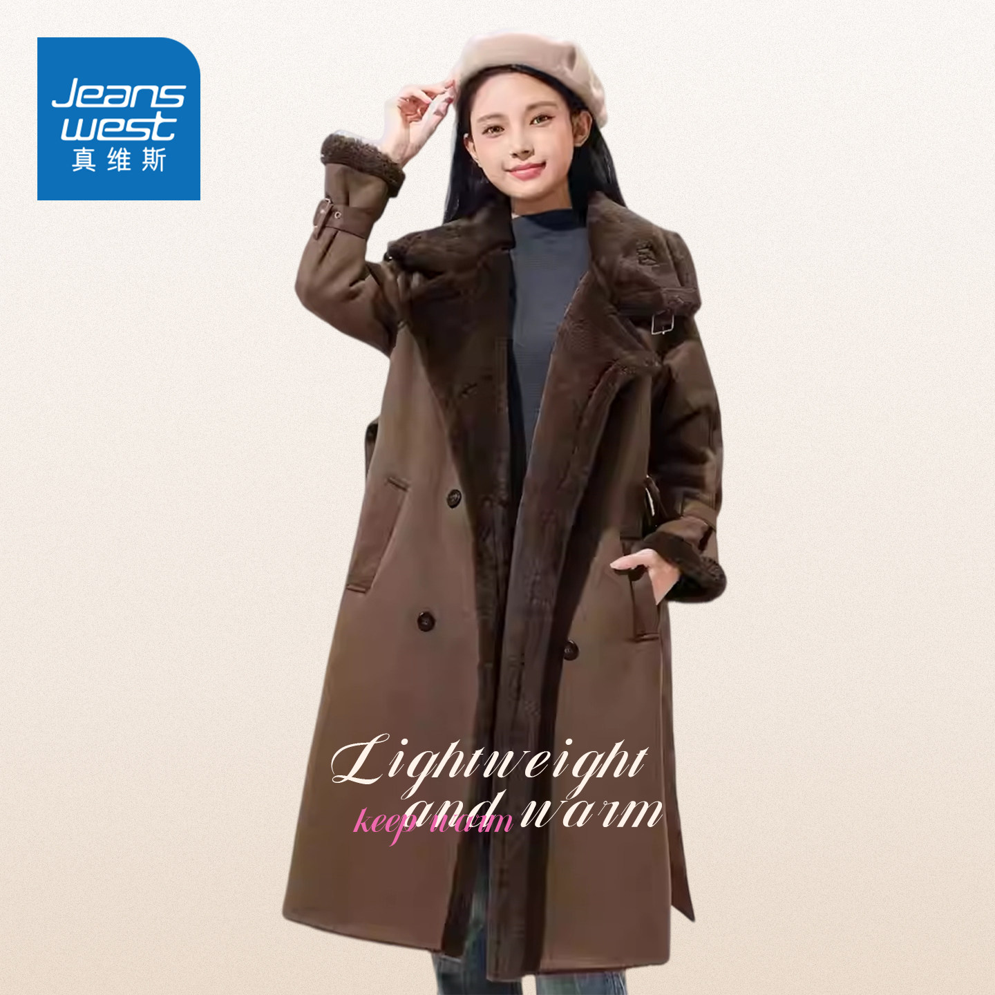 GC真维斯轻奢秋冬季大衣复古气质港风高街ins女款保暖加绒外套潮