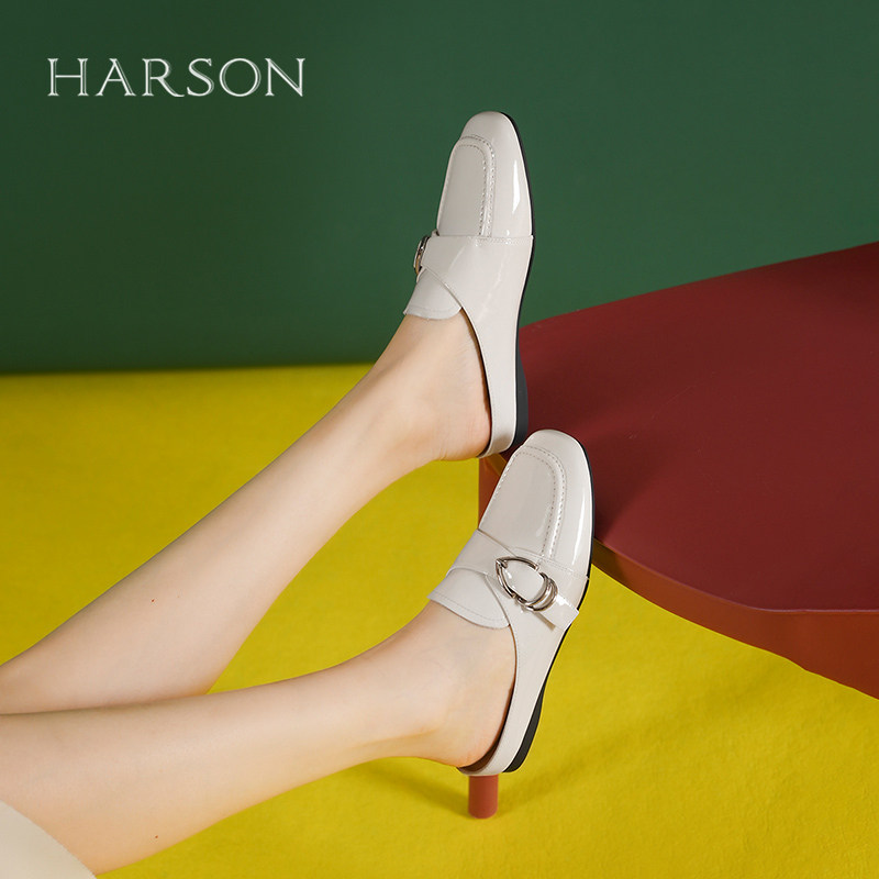 哈森真皮包头拖鞋女夏季新款时尚平跟外穿凉拖鞋HWM250111