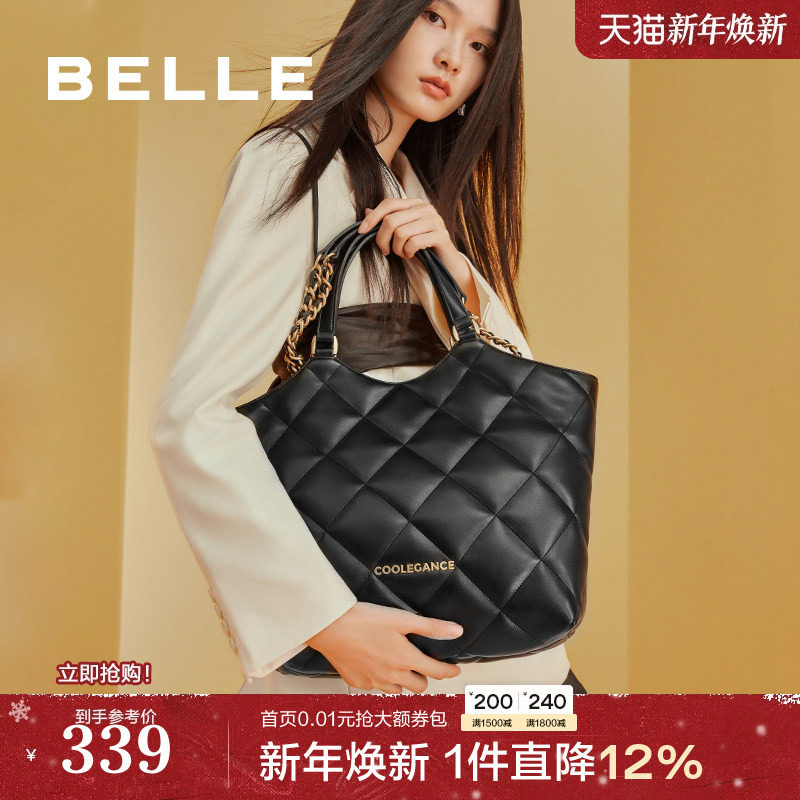 百丽包包女新款通勤大容量手提托特包菱格包小香风单肩包X6384DX2