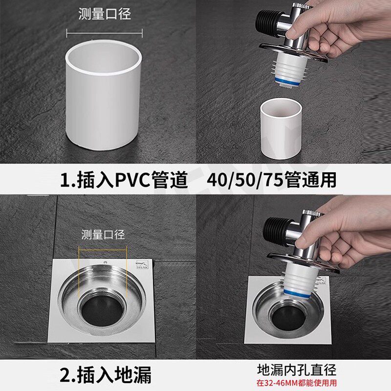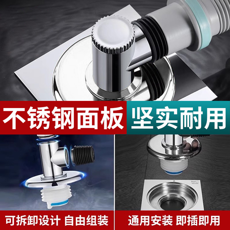 洗衣机地漏专用接头下水排水管道防反溢水二合一三通方形地漏盖子