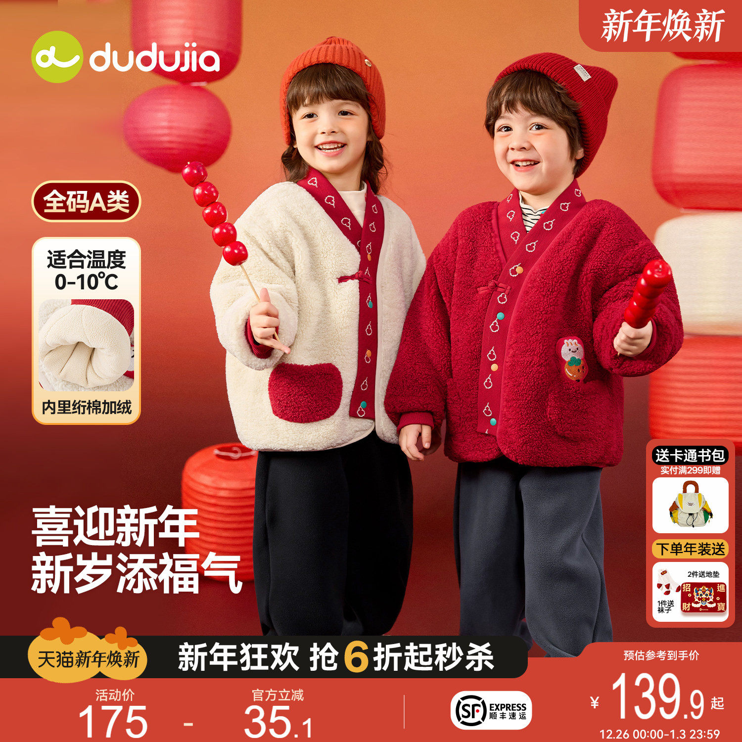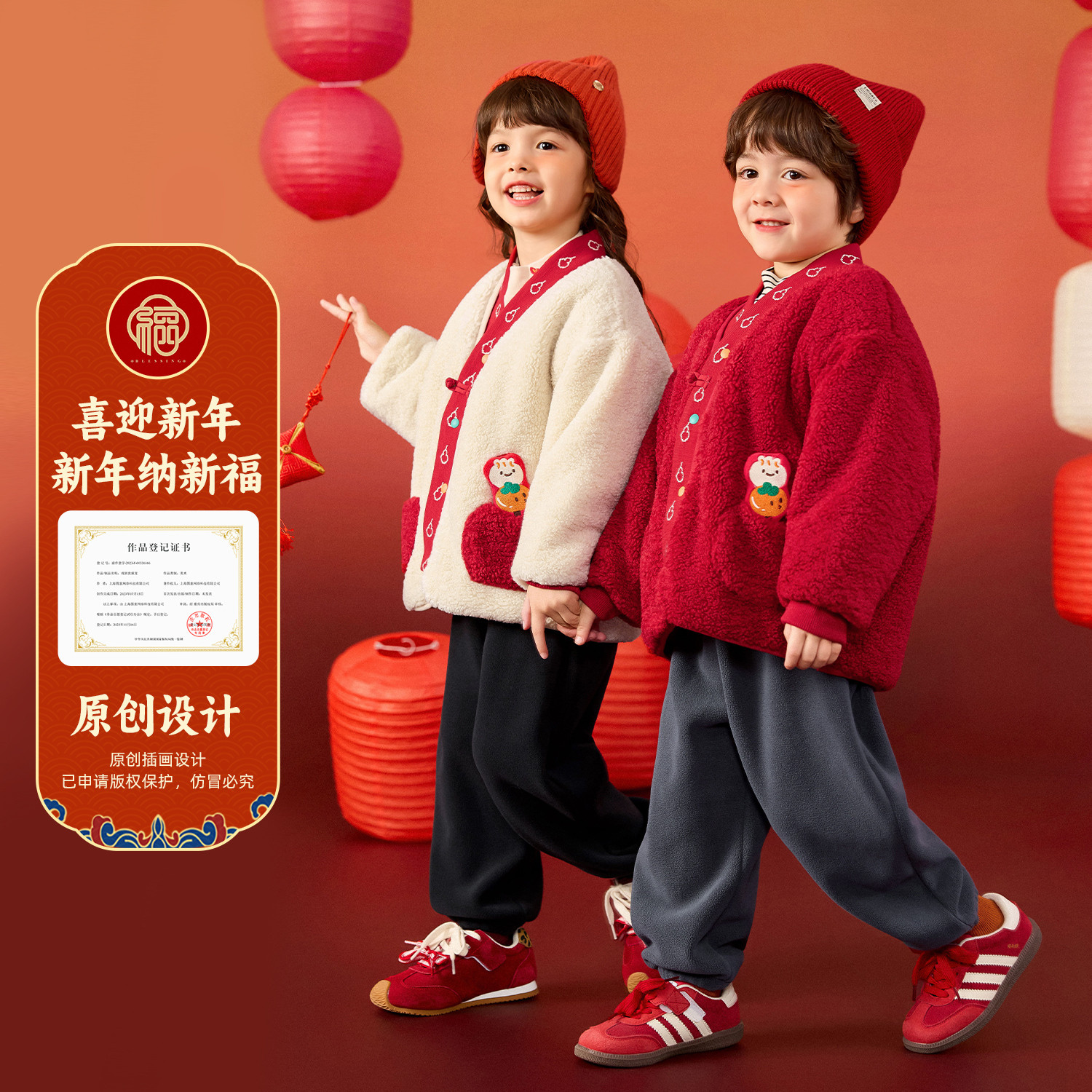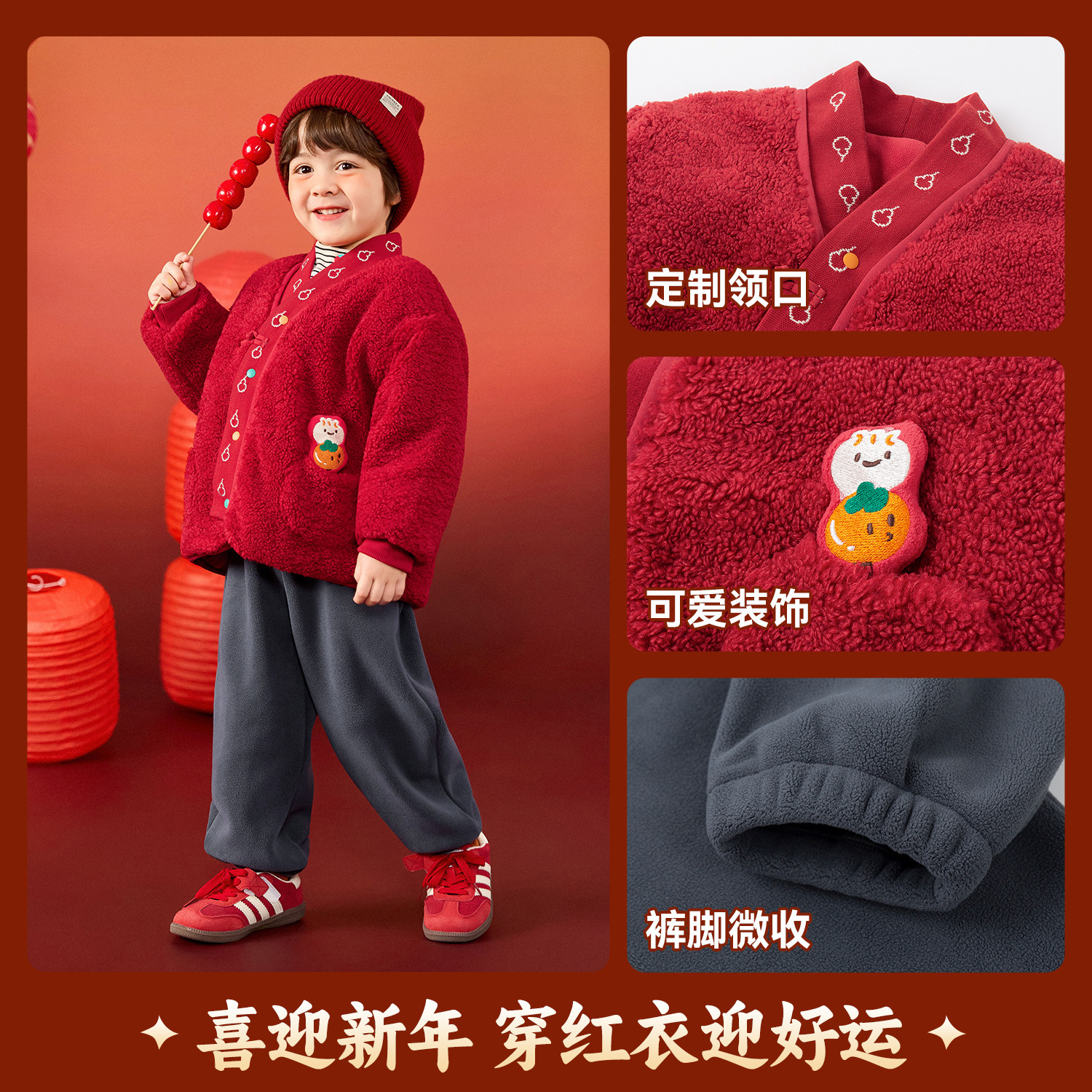 嘟嘟家男童拜年服套装冬季儿童唐装女童新年装宝宝外套裤子冬童装