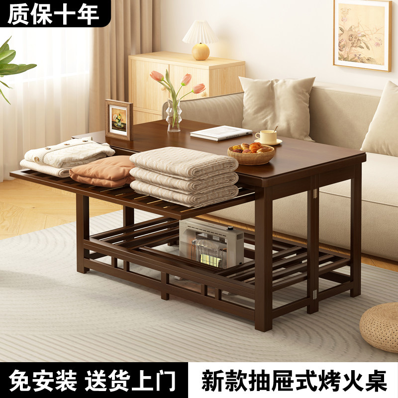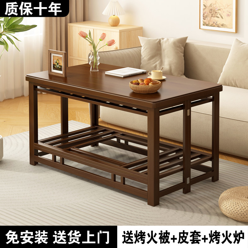 烤火桌子家用可折叠楠竹烤火架冬季取暖餐桌长正方形新款炕桌简易
