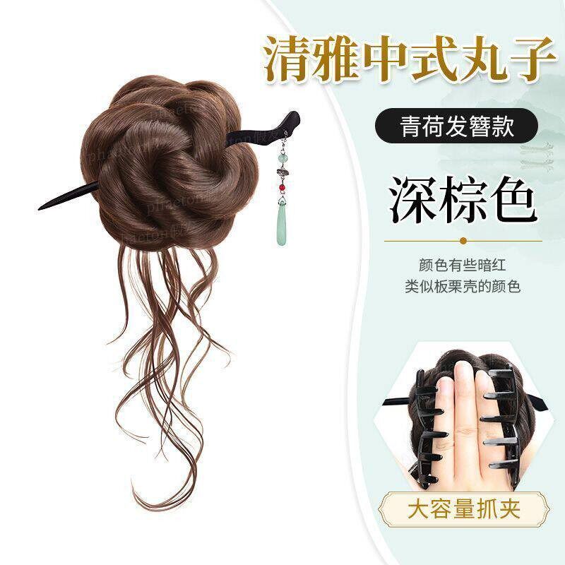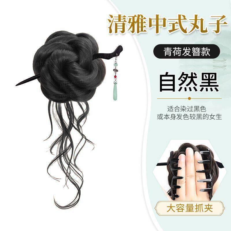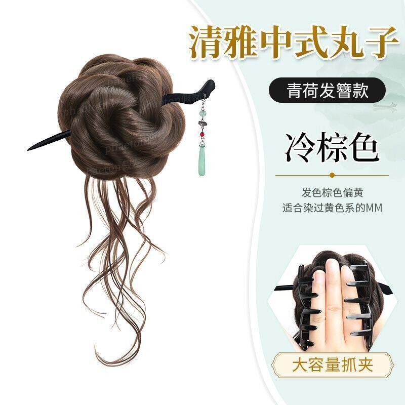 丸子头假发抓夹新中式古风汉服假发花苞头盘发自然仿真蓬松假发包