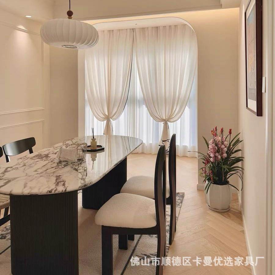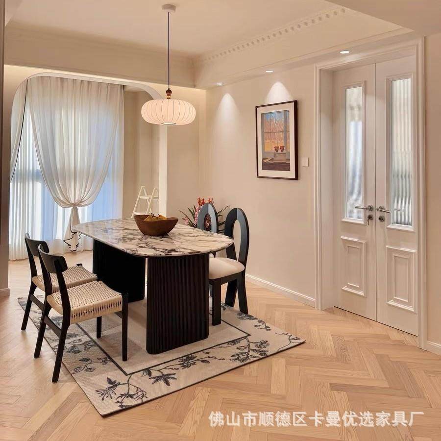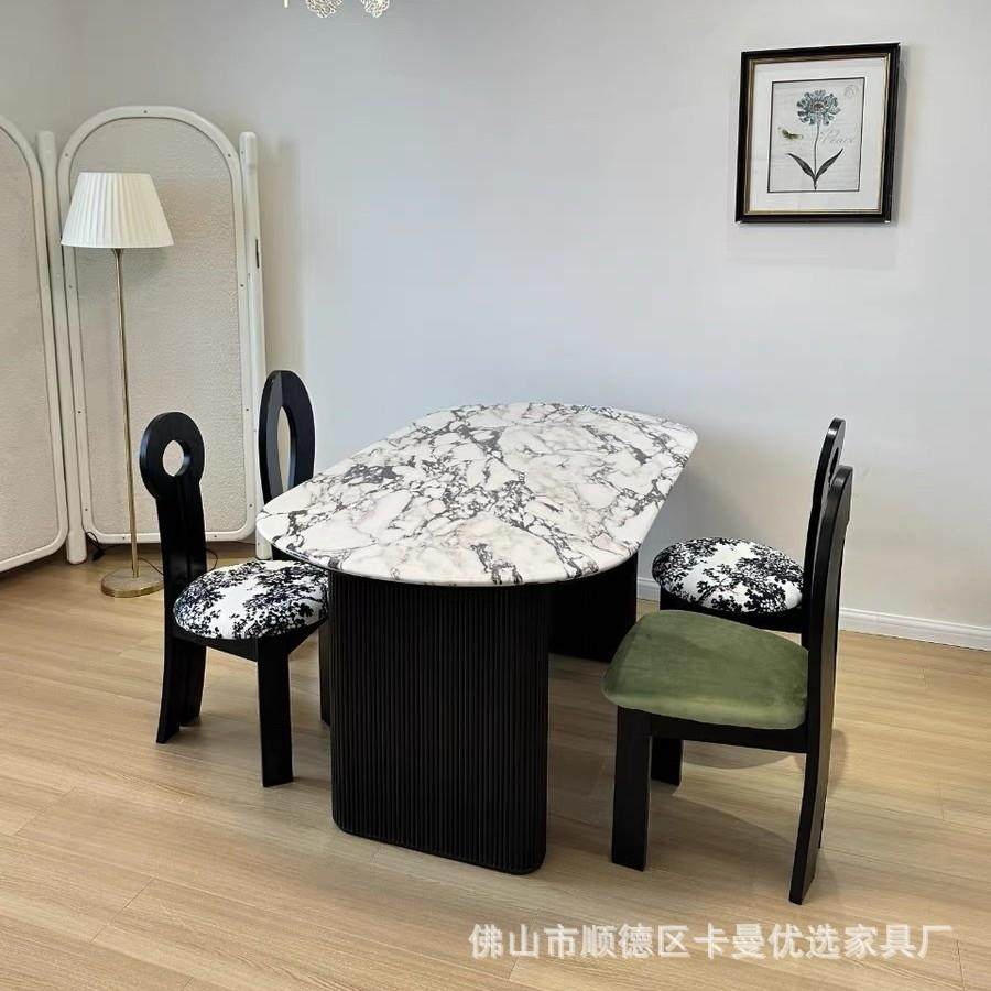 琉光餐桌宝格莉大理石餐桌椭圆形法式奶油风轻奢复古实木桌椅