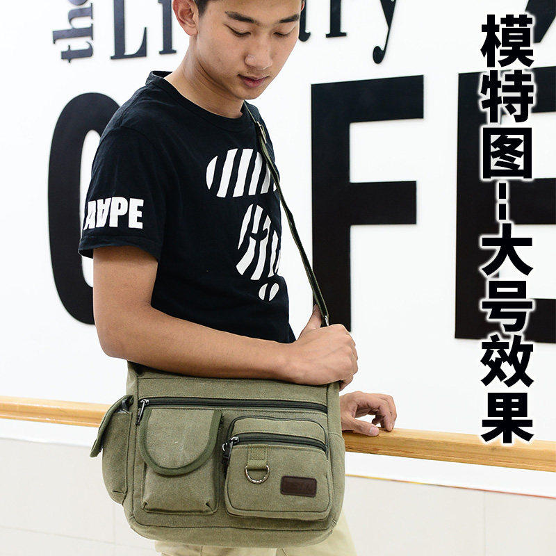 男士帆布包单肩包 韩版休闲 帆布男包 商务斜挎包小跨包背包