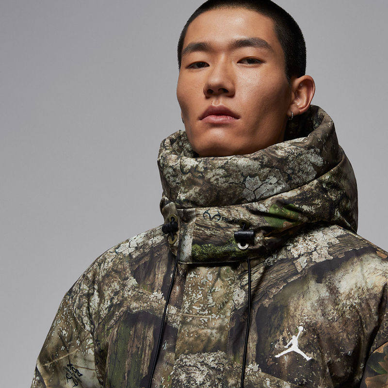 JORDAN耐克男子宽松羽绒服长款冬季防泼水迷彩保暖外套IB4518-222