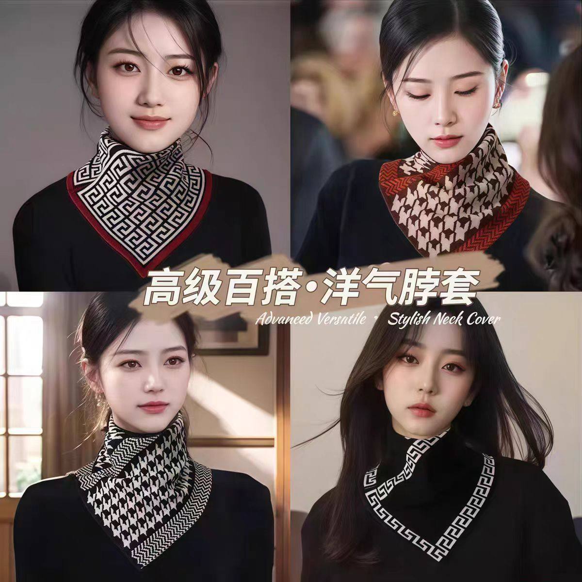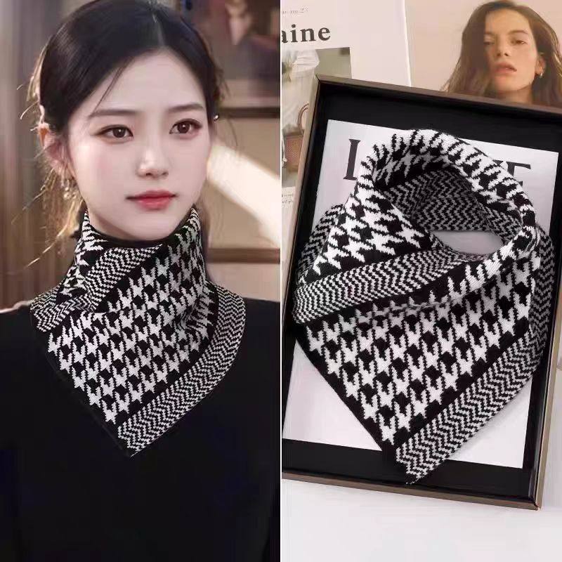 秋冬季三角围巾千鸟格围脖头套加厚保暖防风氛围感围脖潮护颈假领