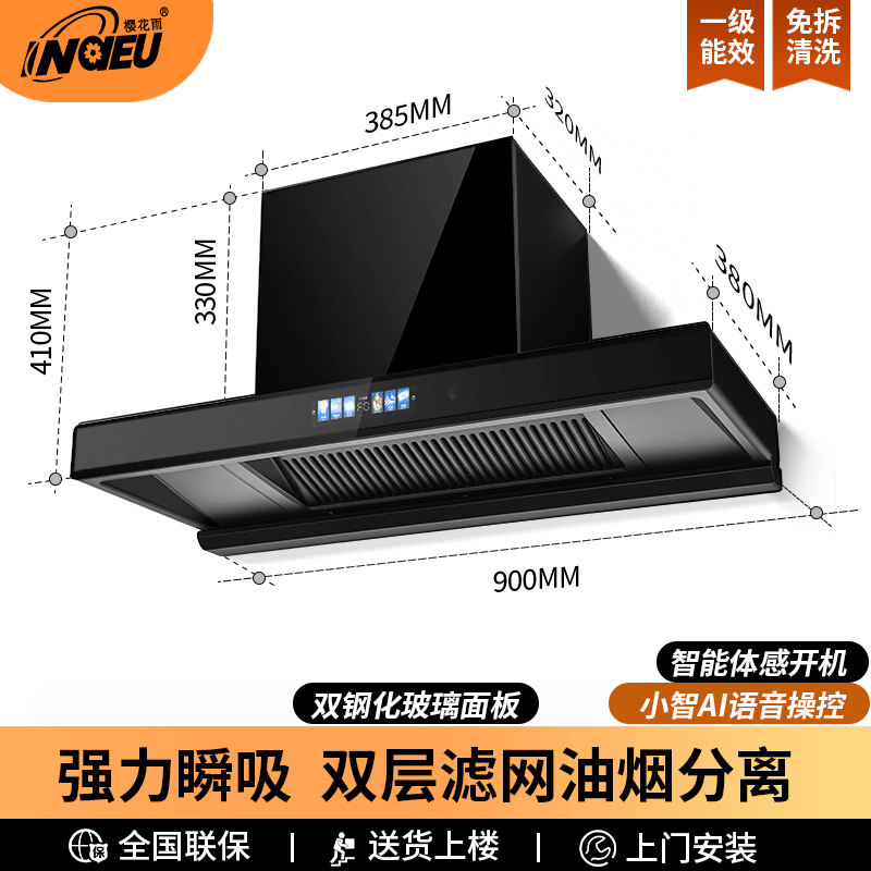 樱花雨抽油烟机顶吸式家用新款厨房大吸力抽烟机自动清洗智能吸油