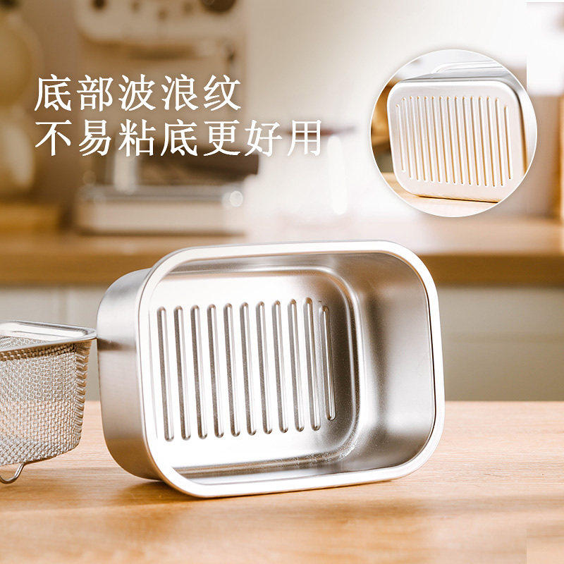 保鲜盒不锈钢加厚食品级方盘冰箱收纳盒带盖子烧烤凉菜盘烤鱼盘子