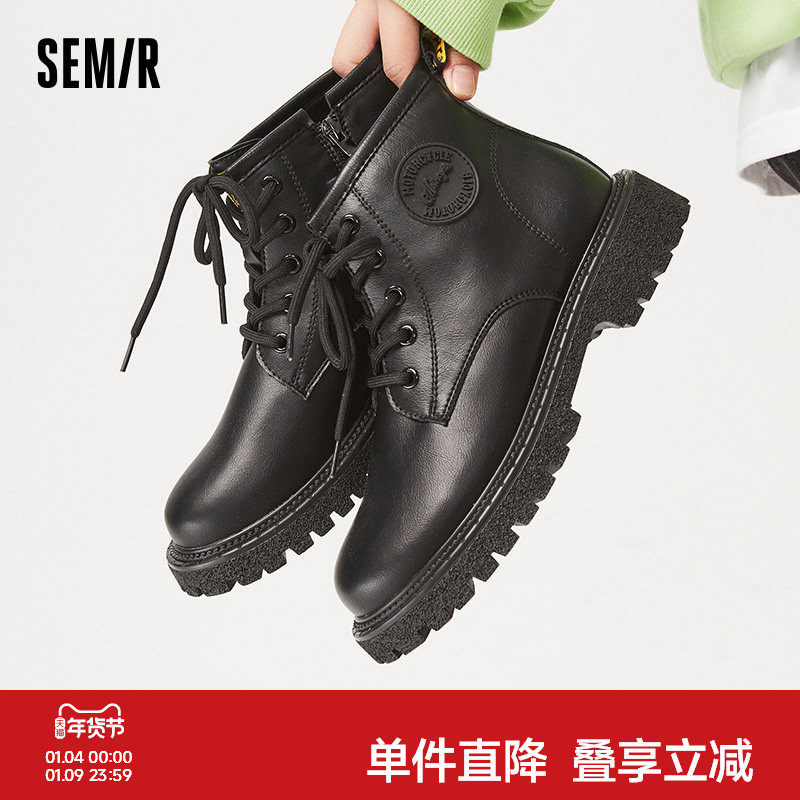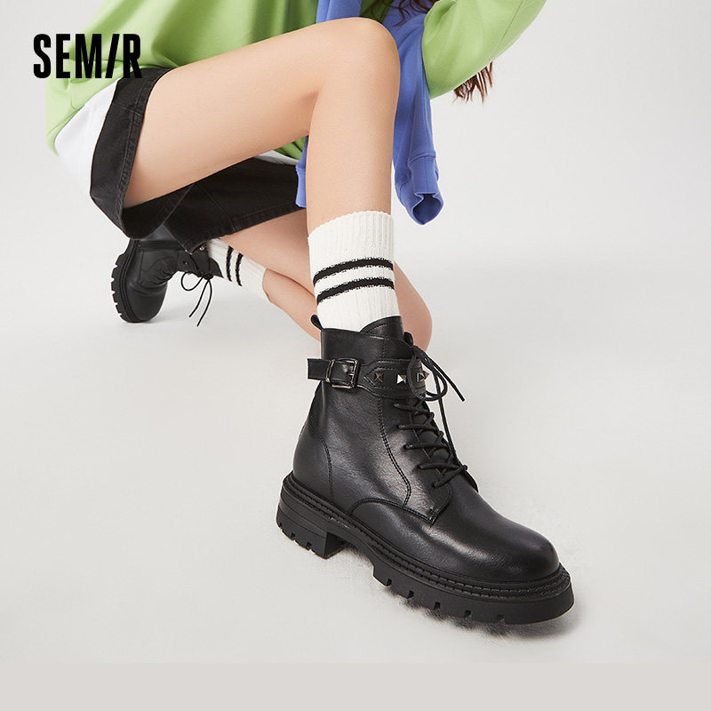 Semir女鞋马丁靴女2025秋冬季休闲百搭瘦瘦靴单靴黑色短靴靴子女