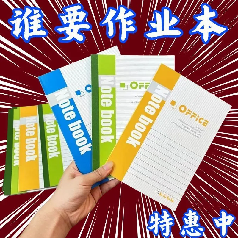 16k牛皮纸笔记本子初中生专用高中生大a4作业本学习横线本单行本练习本簿软面抄加厚16开记录本记事本日记本