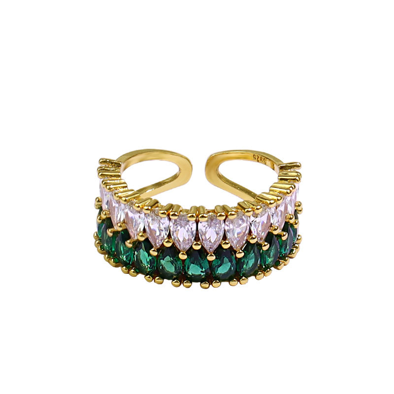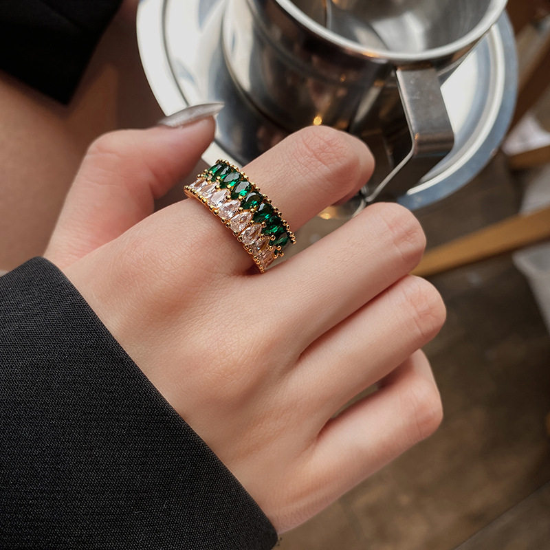 欧美风时尚街拍饰品镶嵌彩色锆石戒指女潮人网红食指指环简约配饰