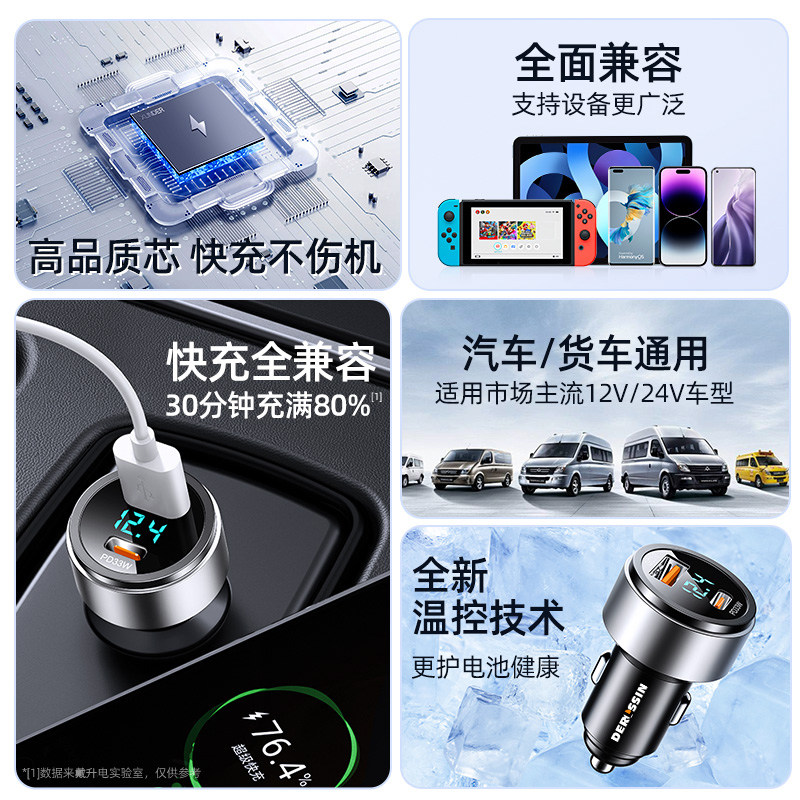 2025新款车载充电器145W超级快充点烟器适用于华为小米苹果快充线