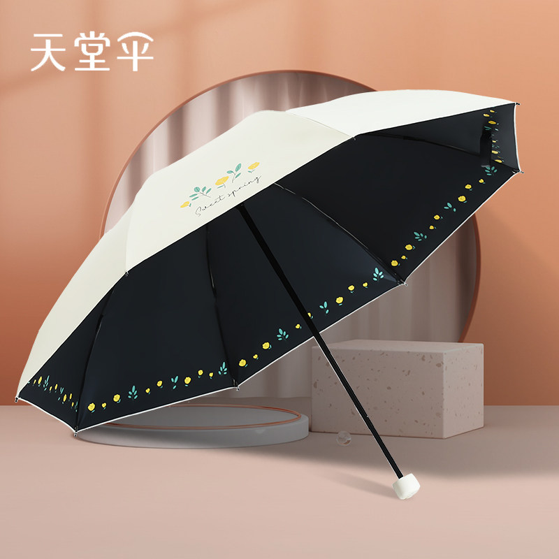 天堂伞黑胶太阳防晒女小清新超轻遮阳伞防紫外线三折叠晴雨伞两用