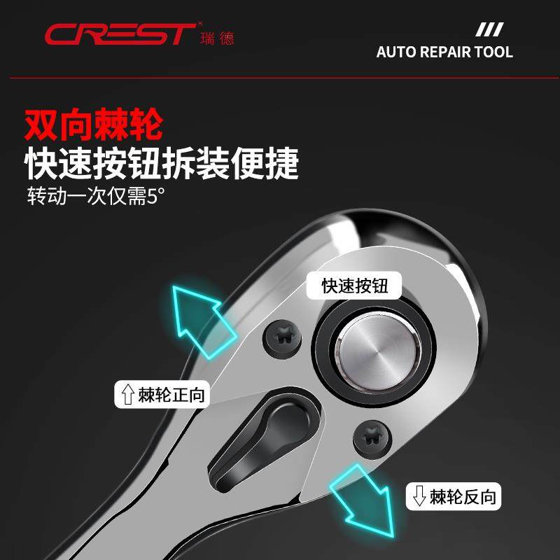 瑞德汽修工具套装套筒扳手棘轮汽车维修组合修车工具箱多功能小飞