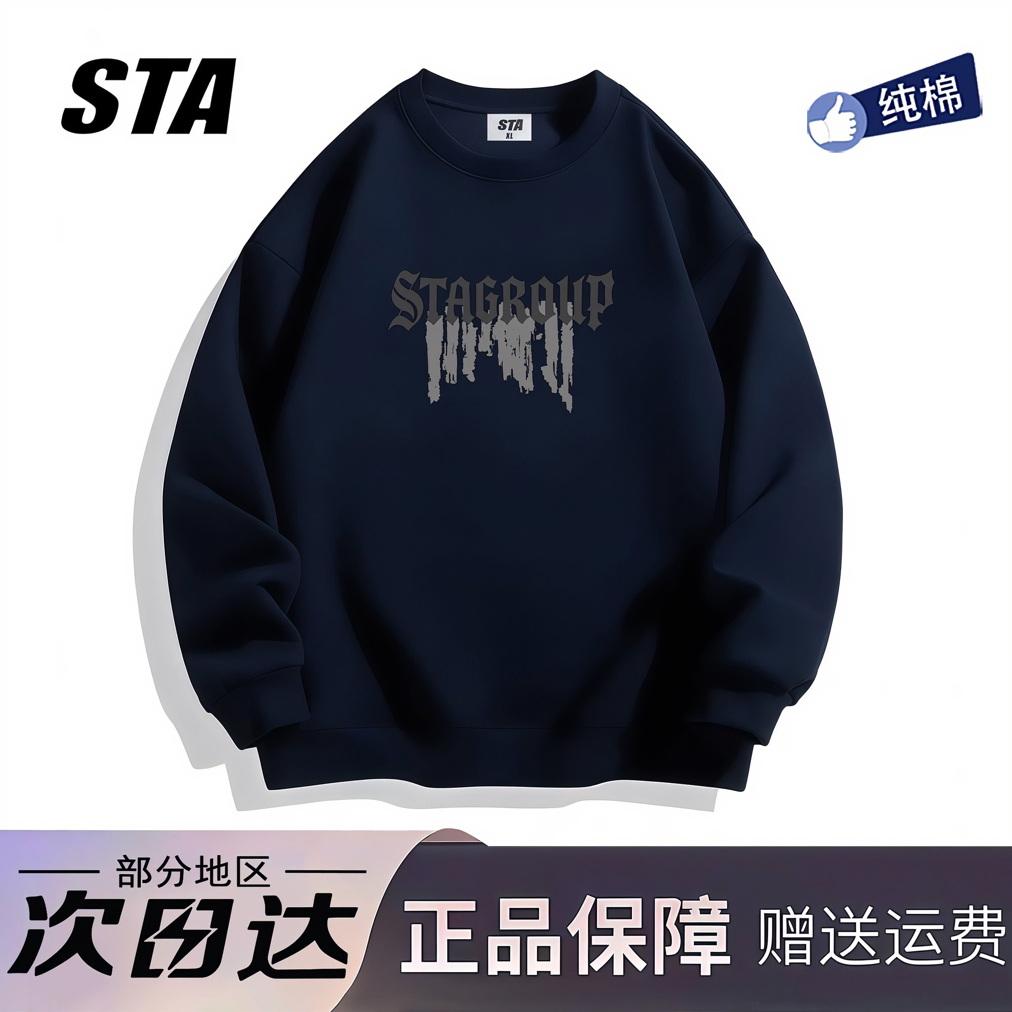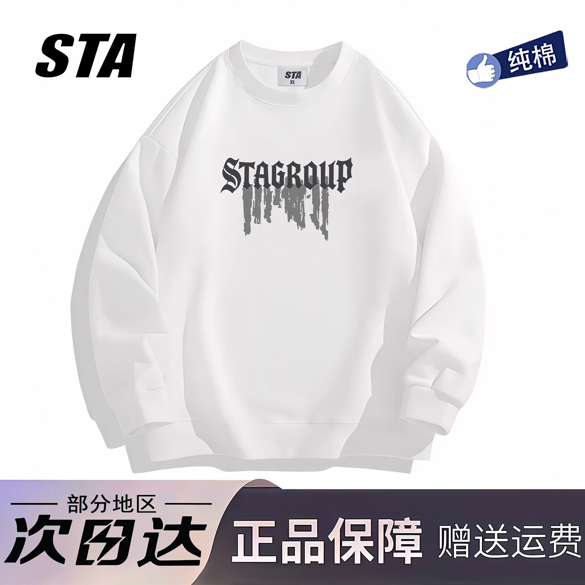 STA旗舰店美式潮牌字母印花圆领卫衣男女情侣宽松打底上衣长袖