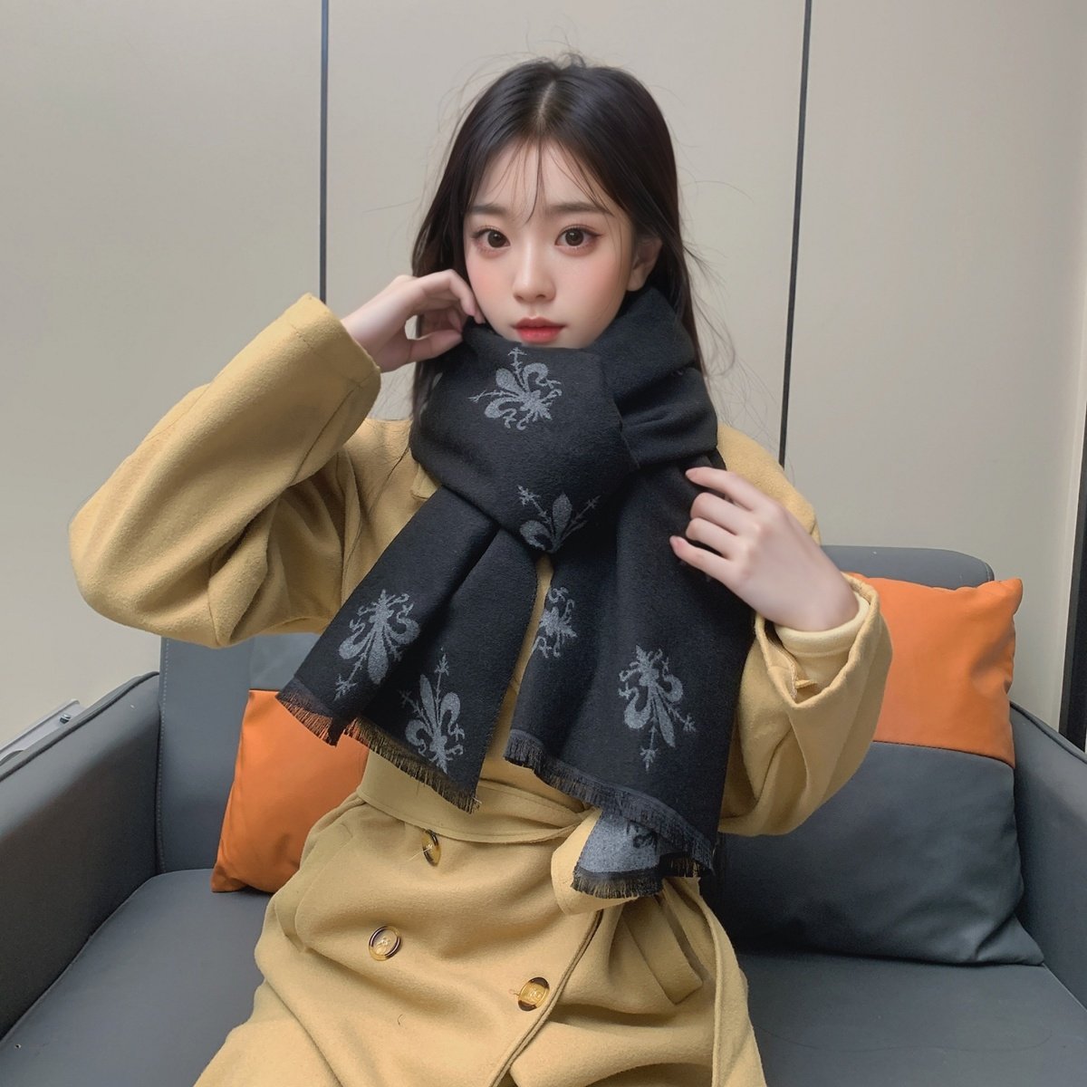 围巾女冬季新款佛罗伦萨鸢尾花图案披肩加厚百搭双面保暖围脖保暖