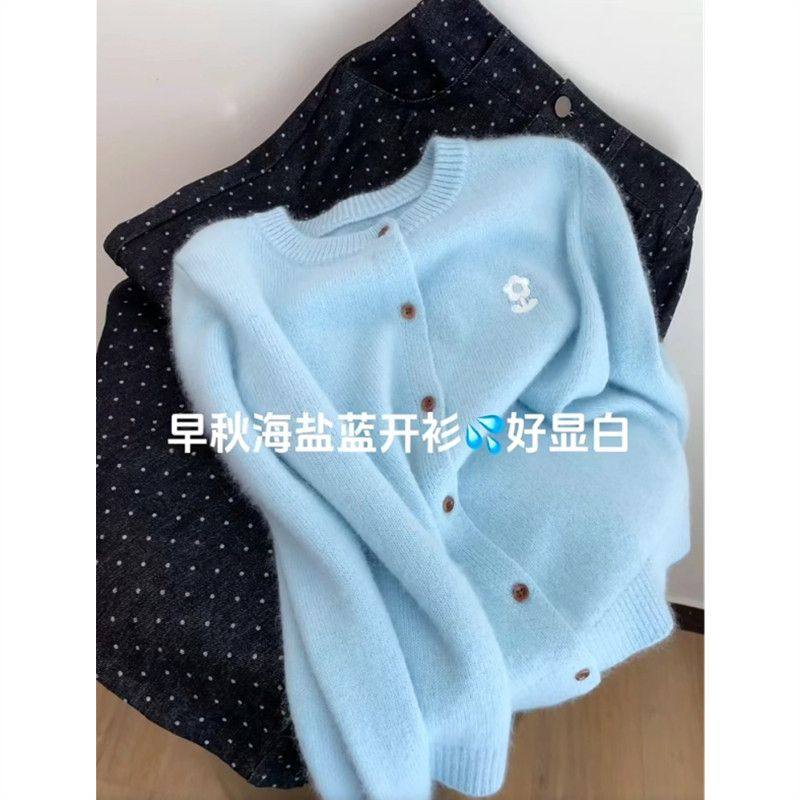 韩系甜美小花朵圆领针织衫开衫女秋冬季新款宽松百搭大码内搭毛衣