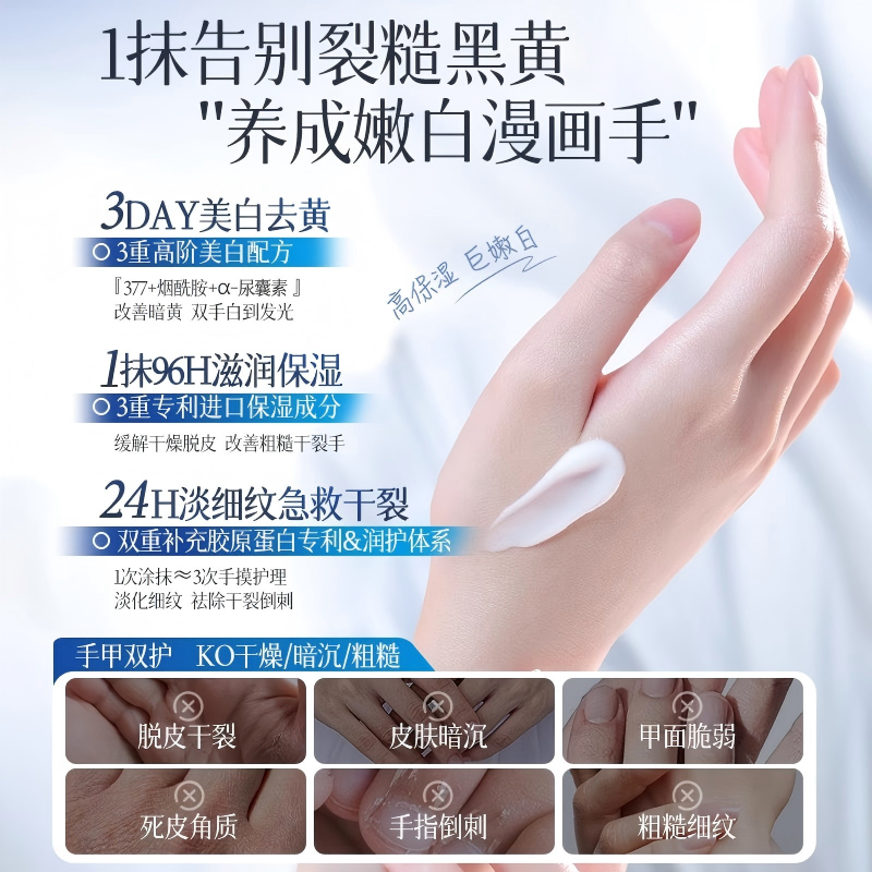 377美白护手霜烟酰胺秋冬保湿补水嫩白去手纹滋润男女淡化好评