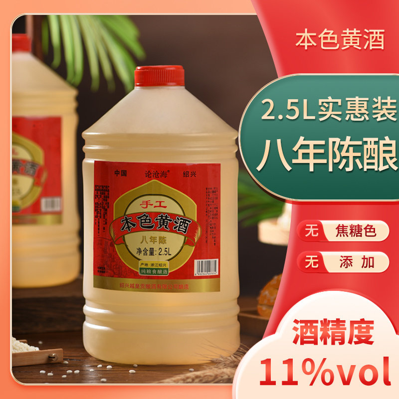 论沧海本色绍兴黄酒花雕酒0添加无焦糖色正宗老酒5斤桶装陈年厨房
