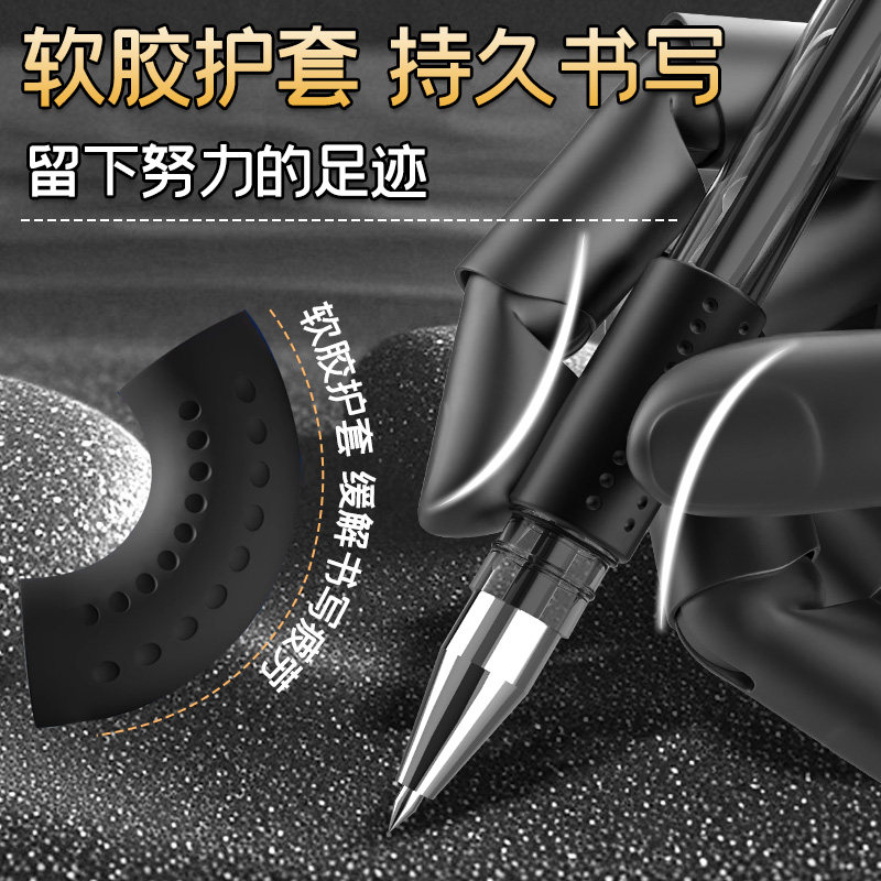 得力刷题笔速干st头透明考试笔考研考公学生用文具黑色0.5刷题备考专用笔中高考高颜中性笔碳素考按动式透明