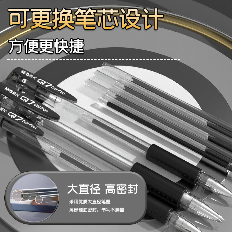 晨光官方中性笔Q7水笔子弹头学生用刷题笔签字笔水性碳素黑笔0.5mm笔芯考试专用教师红色圆珠笔办公用品文具