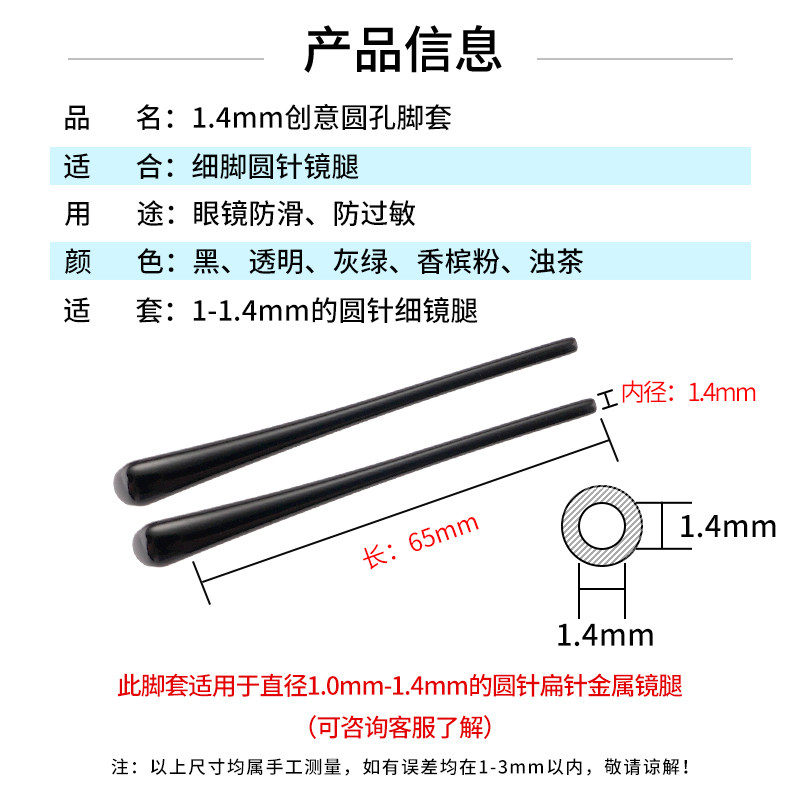 眼镜脚套镜架腿套板材透明不易过敏镜腿防滑套超轻细圆孔替换通用