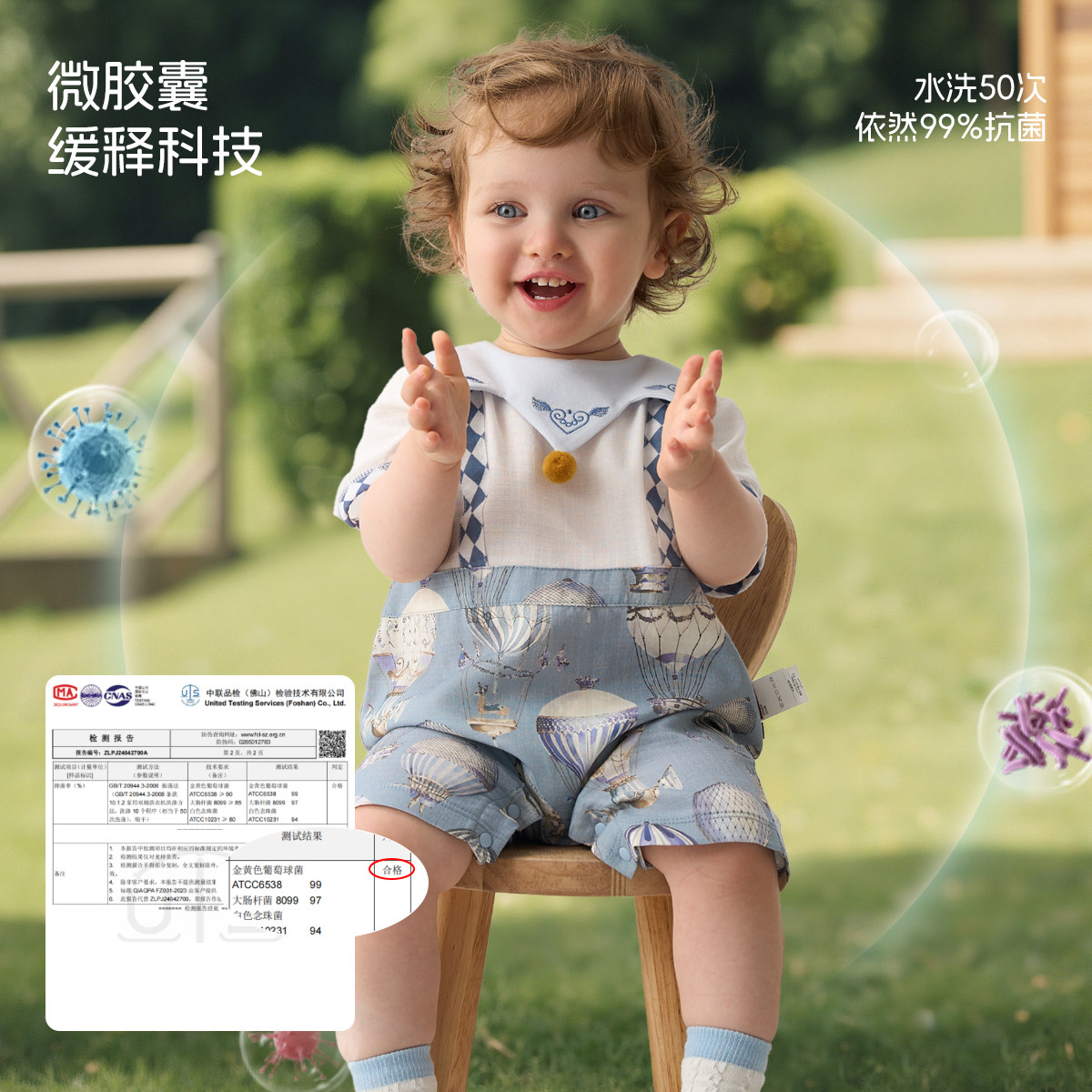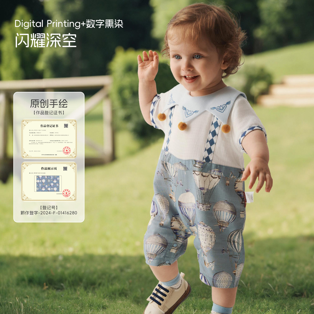 [璀璨蓝宝石]aqpa爱帕婴儿连体衣哈衣夏季纱布薄款宝宝衣服外出服