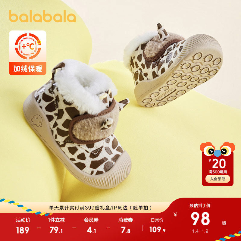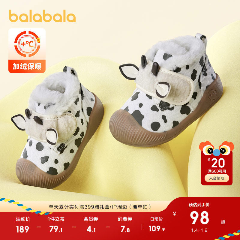巴拉巴拉童鞋儿童学步鞋男宝女宝加绒厚靴子潮流冬棉鞋新宝宝鞋子