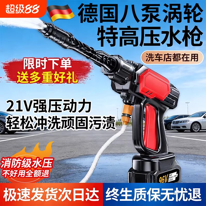 无线锂电洗车机家用无刷高压水枪冲洗增压新型充电清洗机电池电机