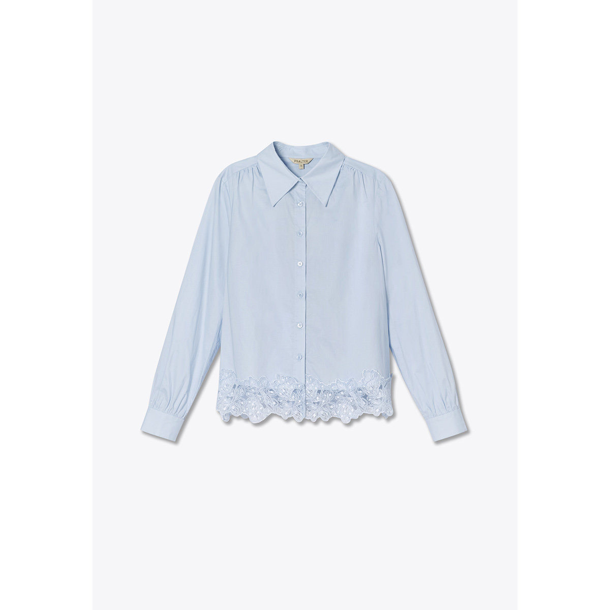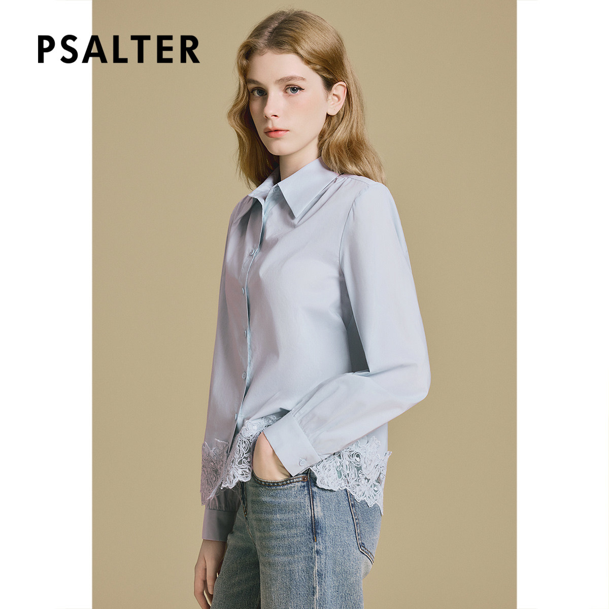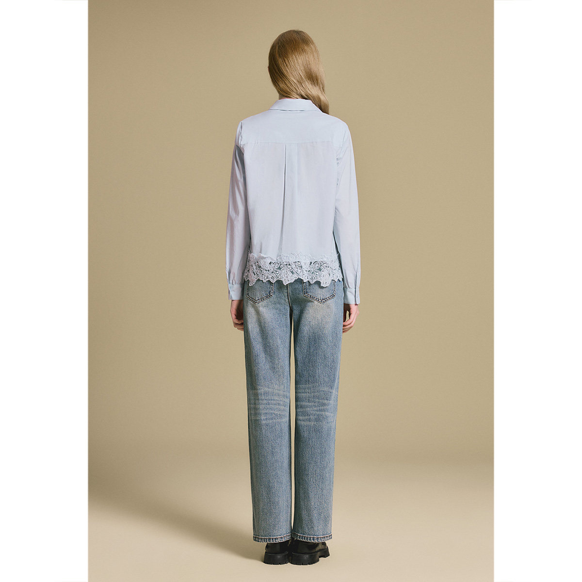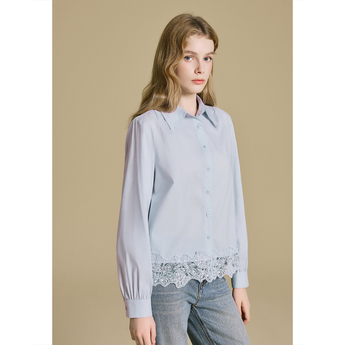 诗篇专选纯色镂空花边拼接设计直筒修身女衬衫2025秋款