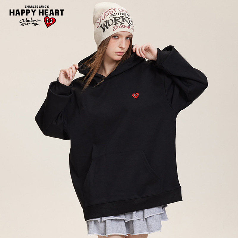 查尔斯桃心涂鸦领带假两件衬衫领加绒卫衣男春秋冬季情侣休闲上衣
