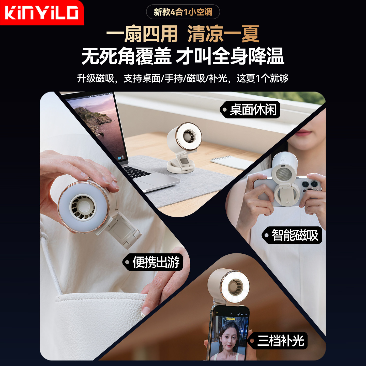 磁吸小风扇】新款手持小风扇小型直播便捷式自拍美颜灯磁吸补光灯迷你桌面风扇学生宿舍户外静音usb制冷风扇