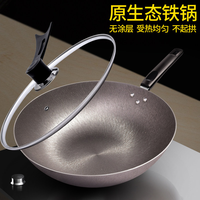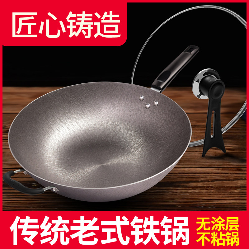 老式铸铁锅炒菜锅家用无涂层炒锅不粘锅电磁炉专用生铁锅平底圆底