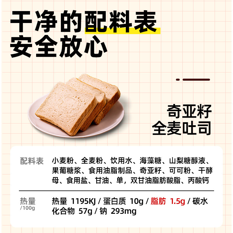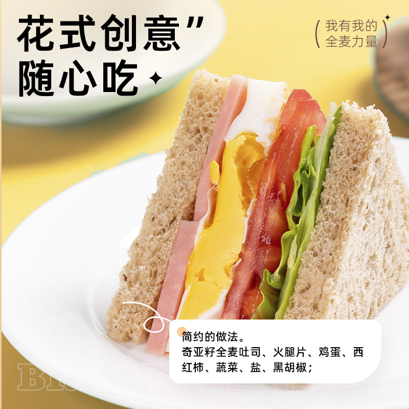 奇亚籽黑全麦吐司面包片代餐饱腹低无蔗糖脂肪小零食小吃休闲食品