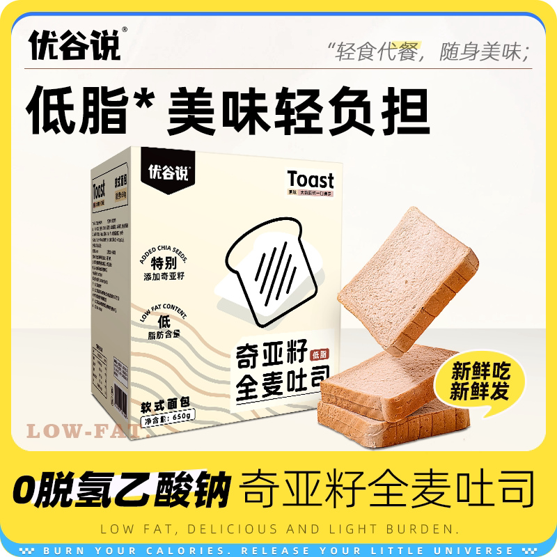 优谷说奇亚籽全麦面包吐司低粗粮孕妇代餐饱腹食品早餐整箱热量