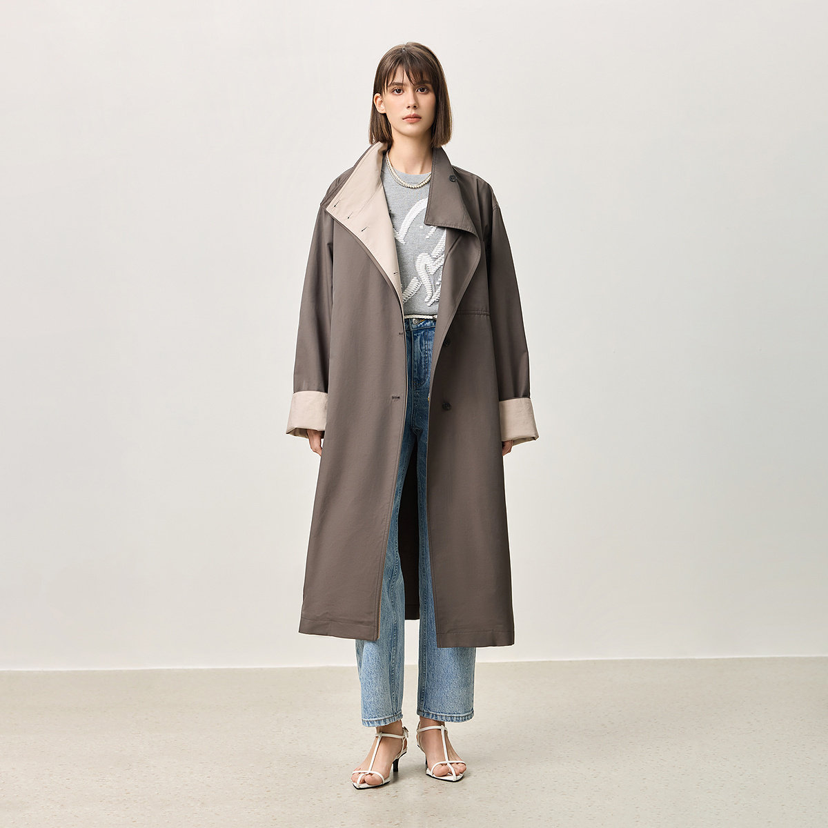 【无氟防水】Eland衣恋经典时尚风衣女宽松休闲外套2025冬季新款