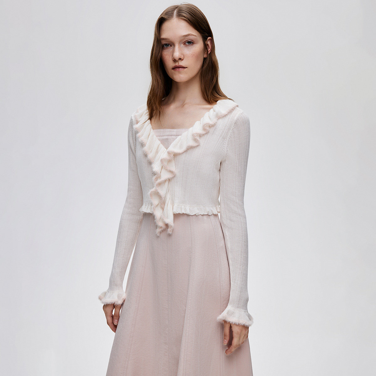 BANANA CICI2026年春季新款荷叶边V领针织衫/连衣裙