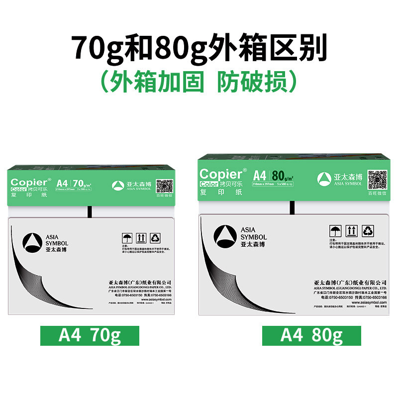 拷贝可乐绿粉考拉A4打印纸70g双面打印加厚80g紫可乐复印纸白纸草稿纸单包500张整箱5包2500张亚太森博A4纸