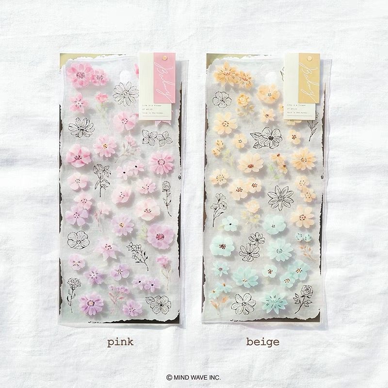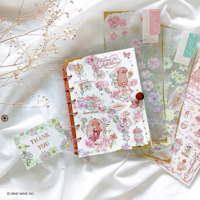蘑菇屯 日本进口 Mind Wave春季限定金箔渐变花朵手帐装饰贴纸