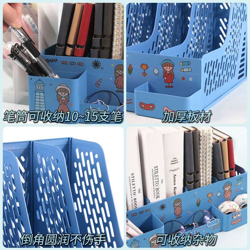 文件架带笔筒收纳盒学生用桌上书立书架筐神器文具加厚多层文件框办公