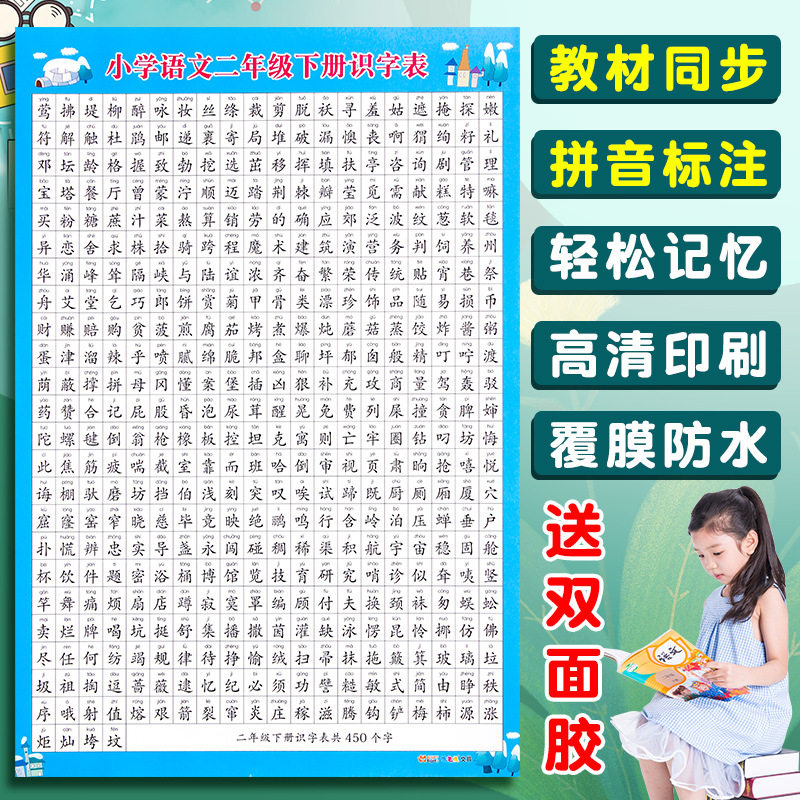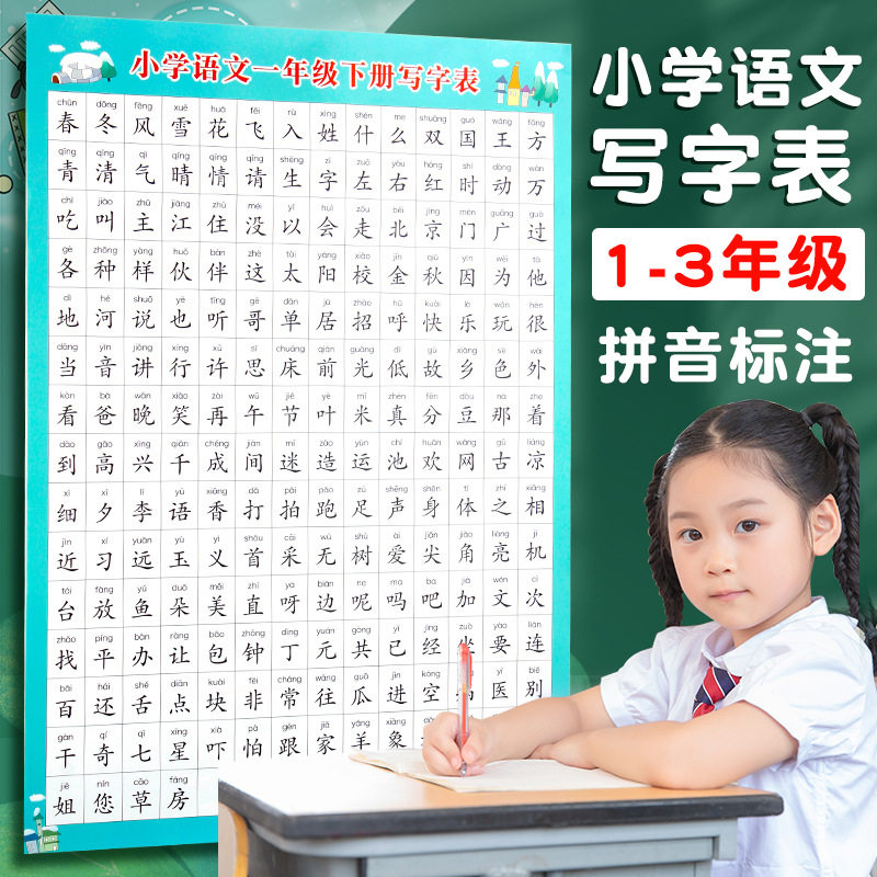 小学语文一年级识字表墙贴二年级写字表三年级人教版认字学习生字表挂图卡片小学生课本同步古诗词表上册下册