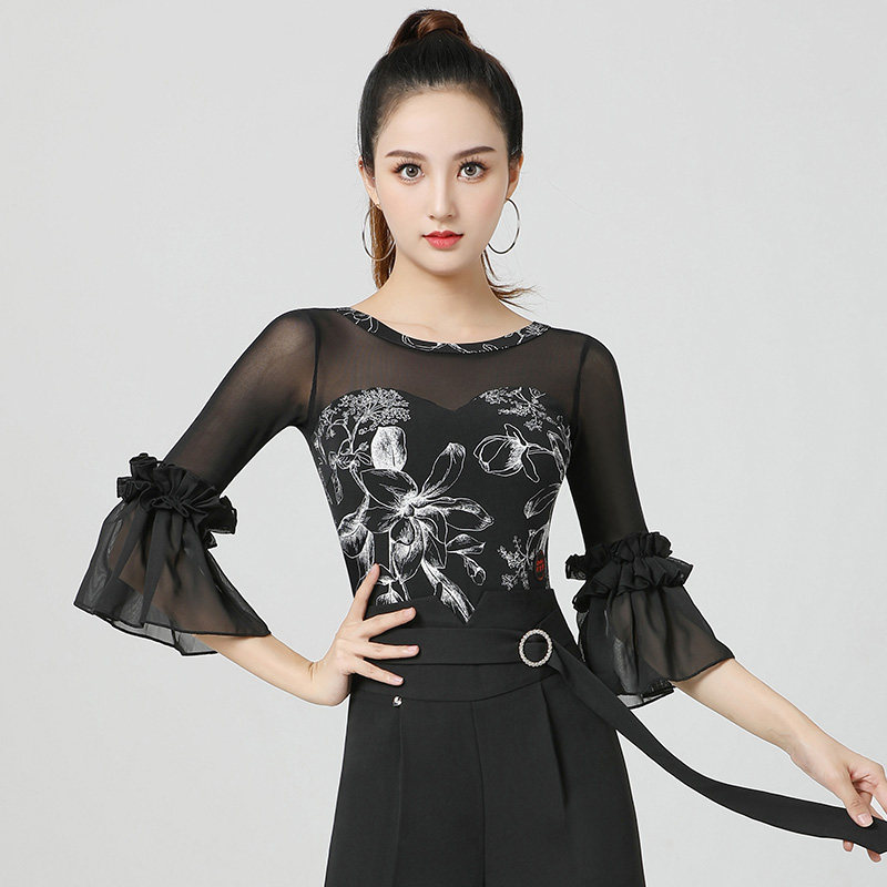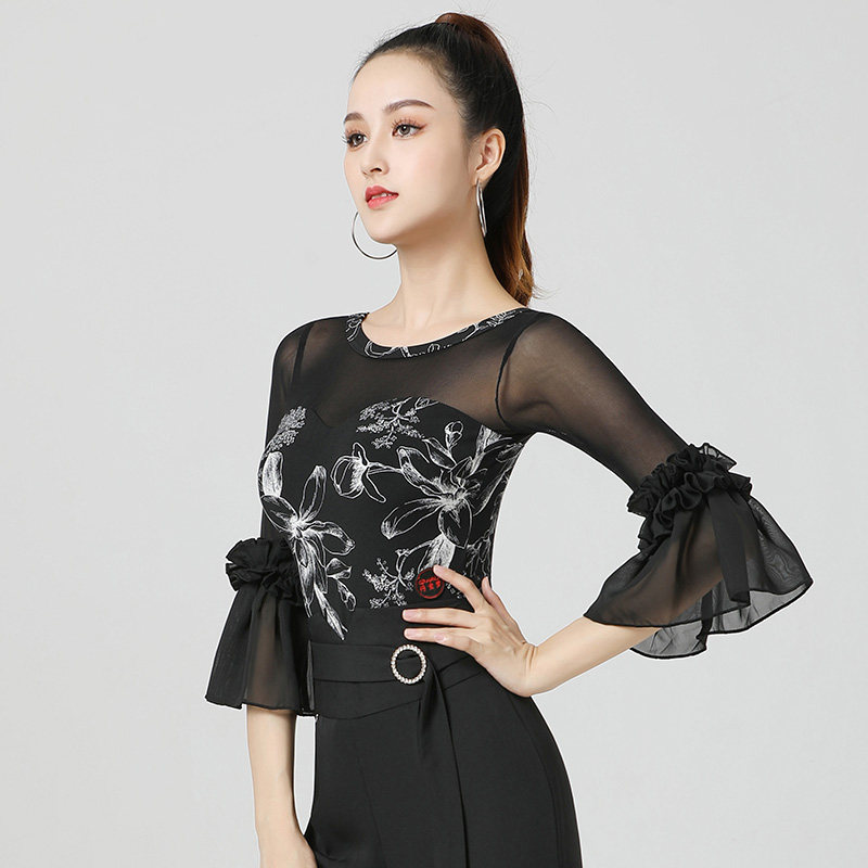 丹宝罗摩登舞上衣女露背喇叭袖带胸垫拉丁舞服设计感交际舞舞蹈服